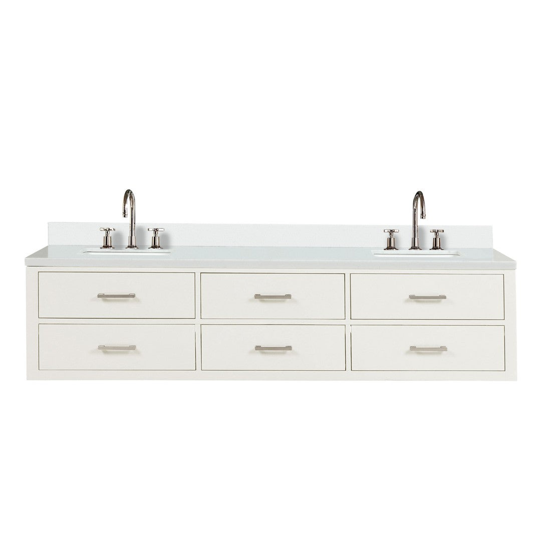 Elevate your bathroom with this elegant white double vanity that combines solid construction, modern convenience, and a pristine quartz surface. Designed for functionality and style, it offers ample storage, soft-close drawers, and a complete faucet set—making installation straightforward and the finished space cohesive and refined.