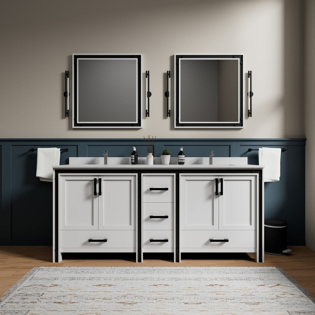 Transform your bathroom into a refined, functional space with this elegant white double vanity. Designed for both style and durability, it pairs a solid wood frame with a cultured marble countertop that resists scratches and stains. Thoughtful storage, soft-close hardware, and a pre-drilled countertop make installation and daily use effortless—ideal for busy households or guest baths where durability and appearance matter.