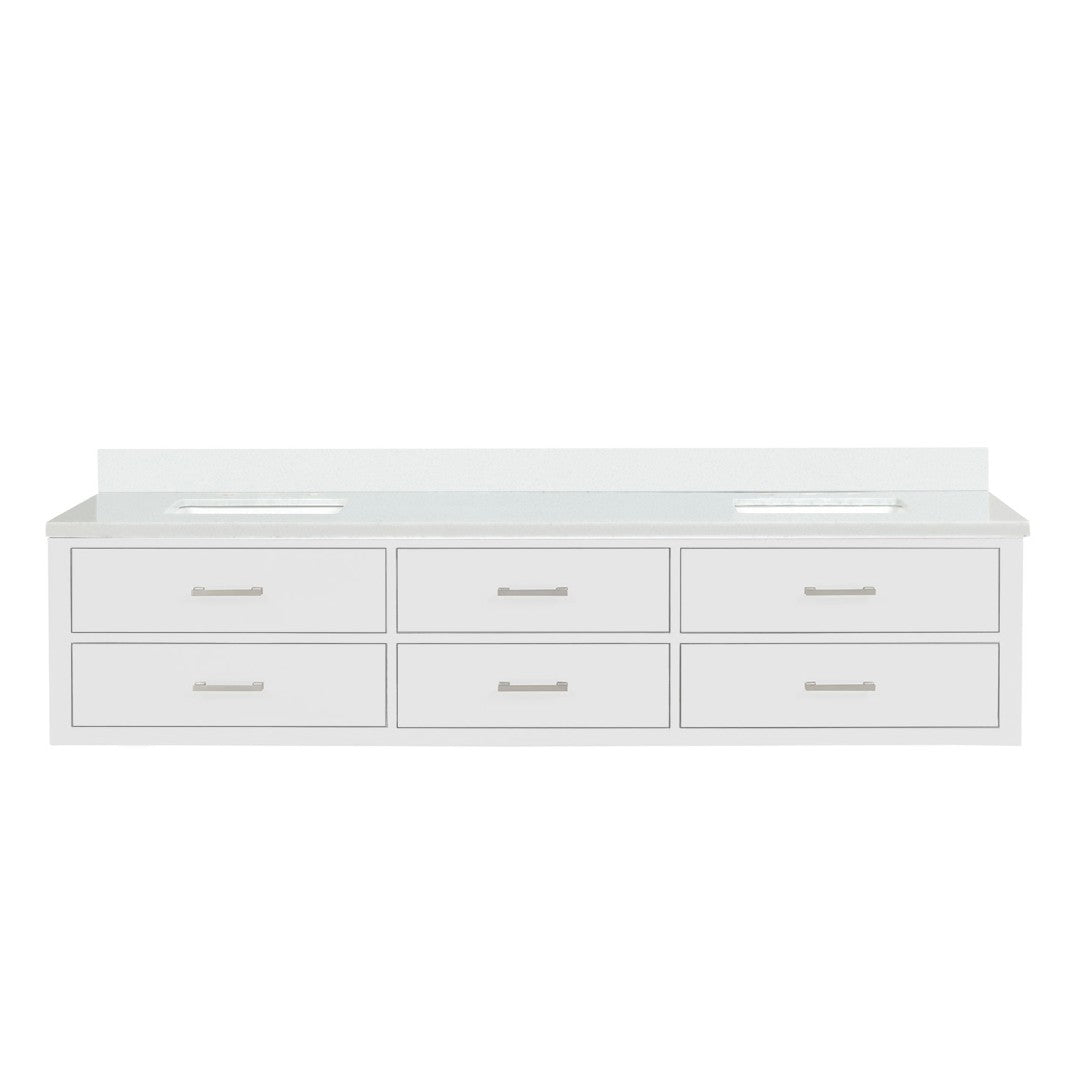 Elevate your bathroom with this elegant White Double Bath Vanity featuring a durable cultured marble countertop and a solid wood frame. Designed for style and convenience, this fully assembled vanity offers generous storage, smooth soft-close drawers, and a clean white finish that complements both modern and traditional bathrooms. Ideal for homeowners seeking a ready-to-install centerpiece that balances form and function.