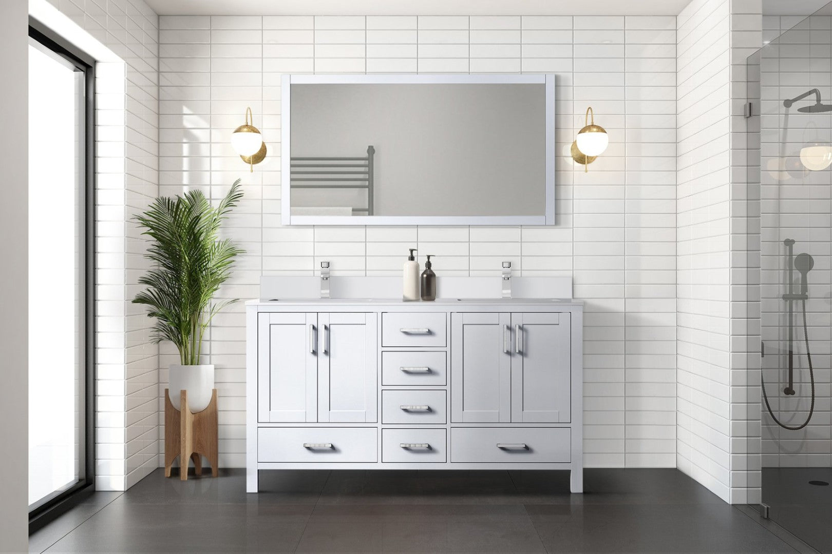 - Included Mirror: 58 in. W x 32 in. H — full-width framed mirror to visually expand the space