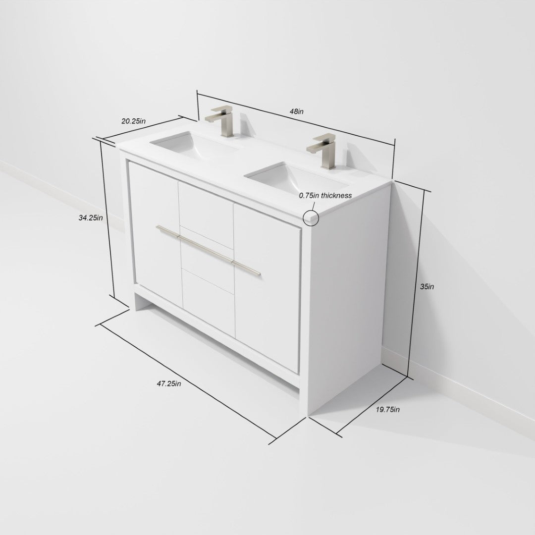 - Vanity footprint: 48 in. W x 20 in. D (as listed in product title)