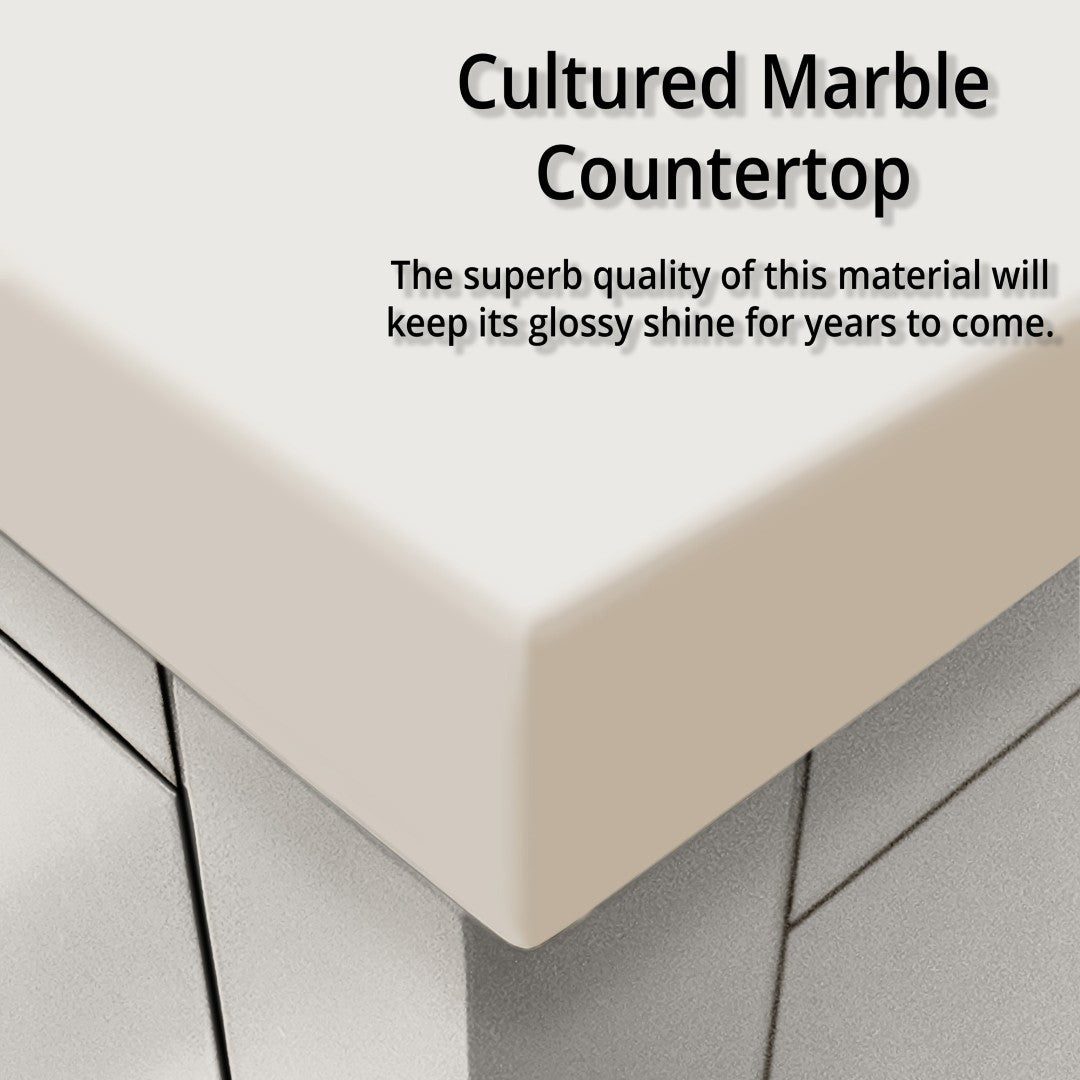 - Complete Set: Includes vanity cabinet, cultured marble top, and matching faucet set for a coordinated installation
