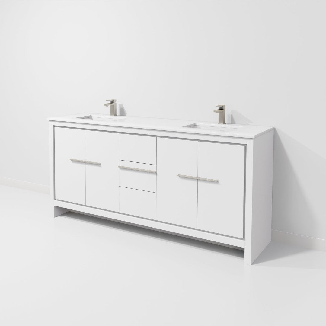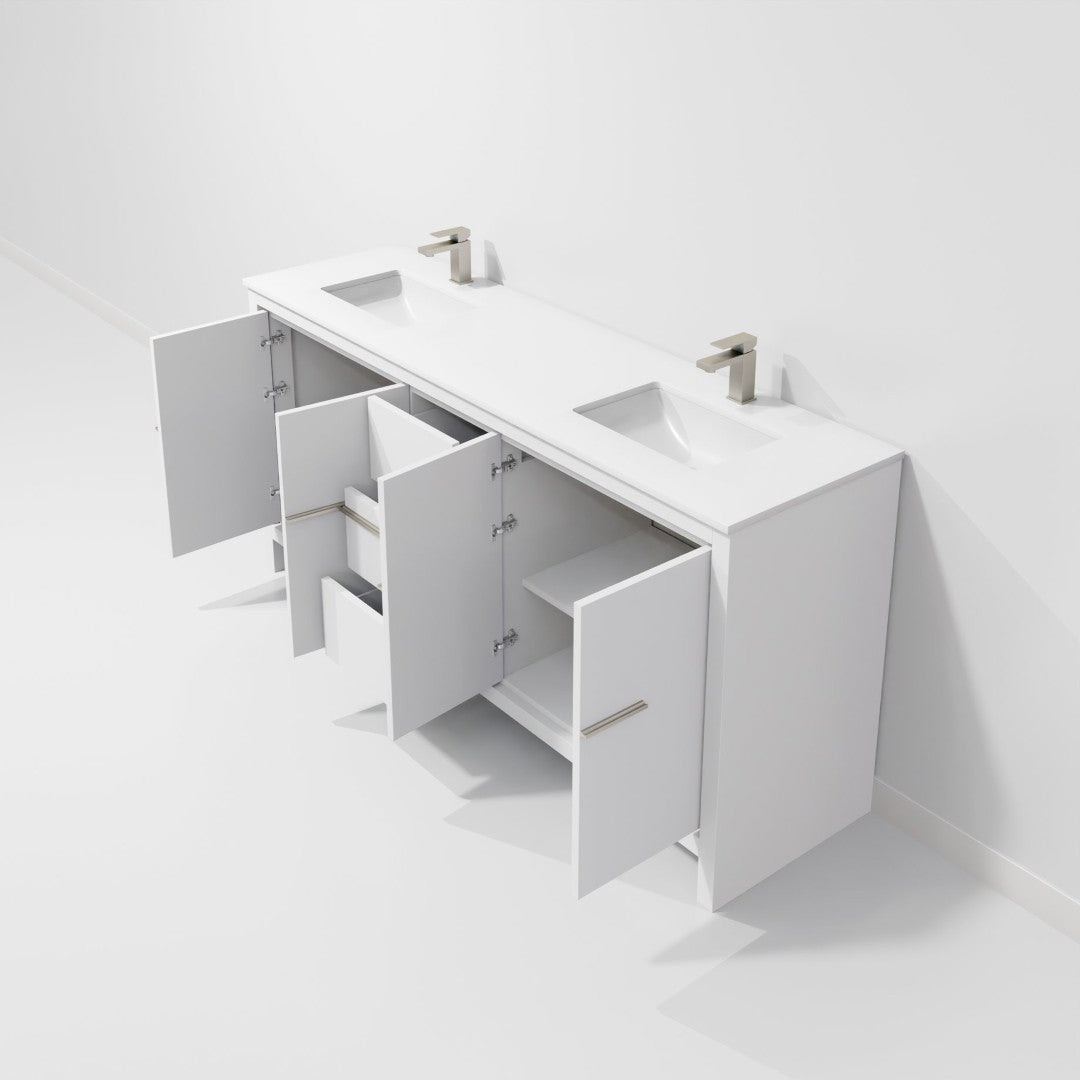 Transform your bathroom with a clean, contemporary double vanity that blends generous storage, durable surfaces, and a refined gun metal faucet set. This white wood vanity features a cultured marble top that resists scratches and stains, soft-close hardware for quiet operation, and a layout designed to keep essentials organized and accessible—ideal for shared or busy bathrooms.