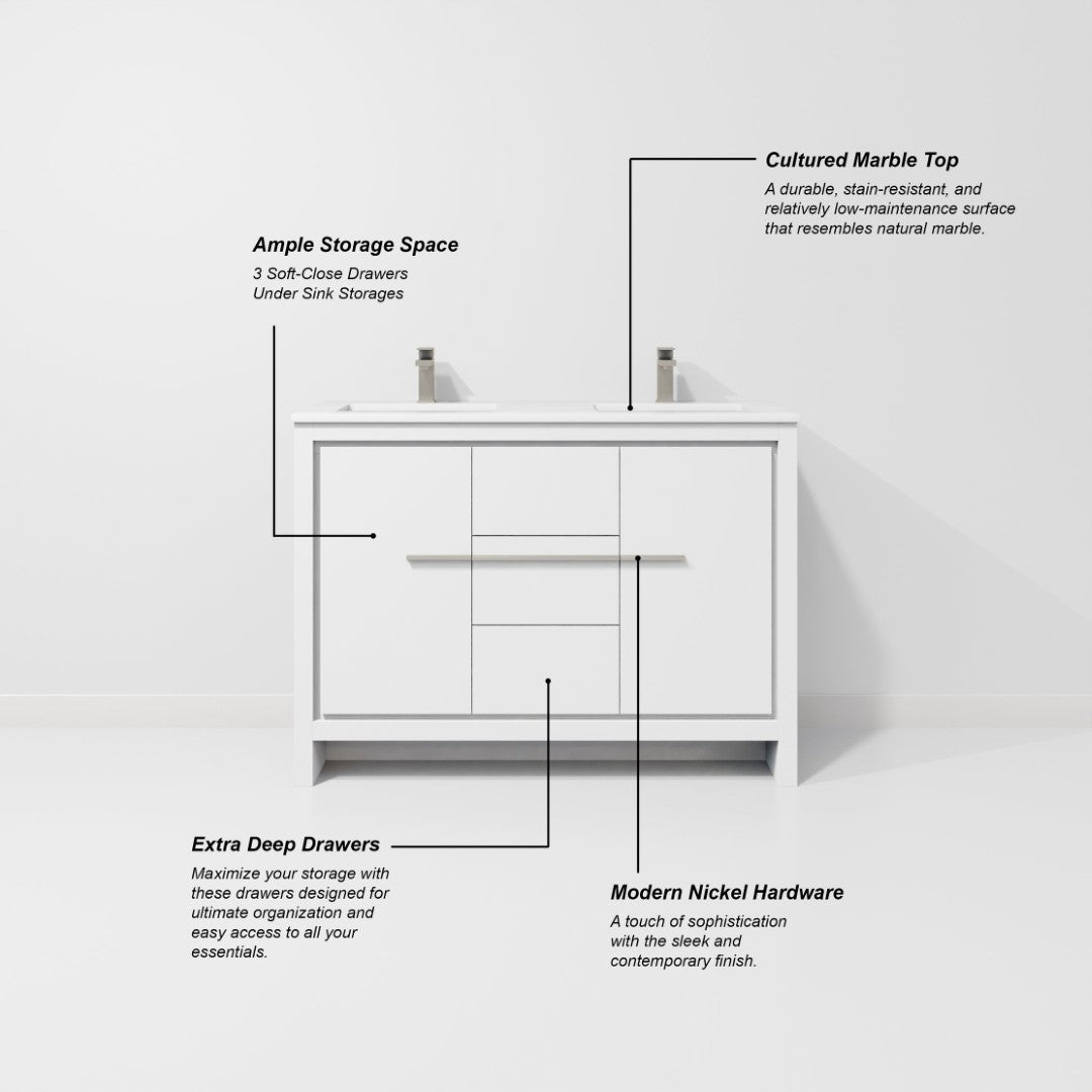 Elevate your bathroom with this elegant white double vanity that combines classic styling with modern functionality. Designed for everyday convenience and lasting durability, it pairs a cultured marble countertop and ample storage with a large matching mirror to create a polished, cohesive look for shared or guest bathrooms.