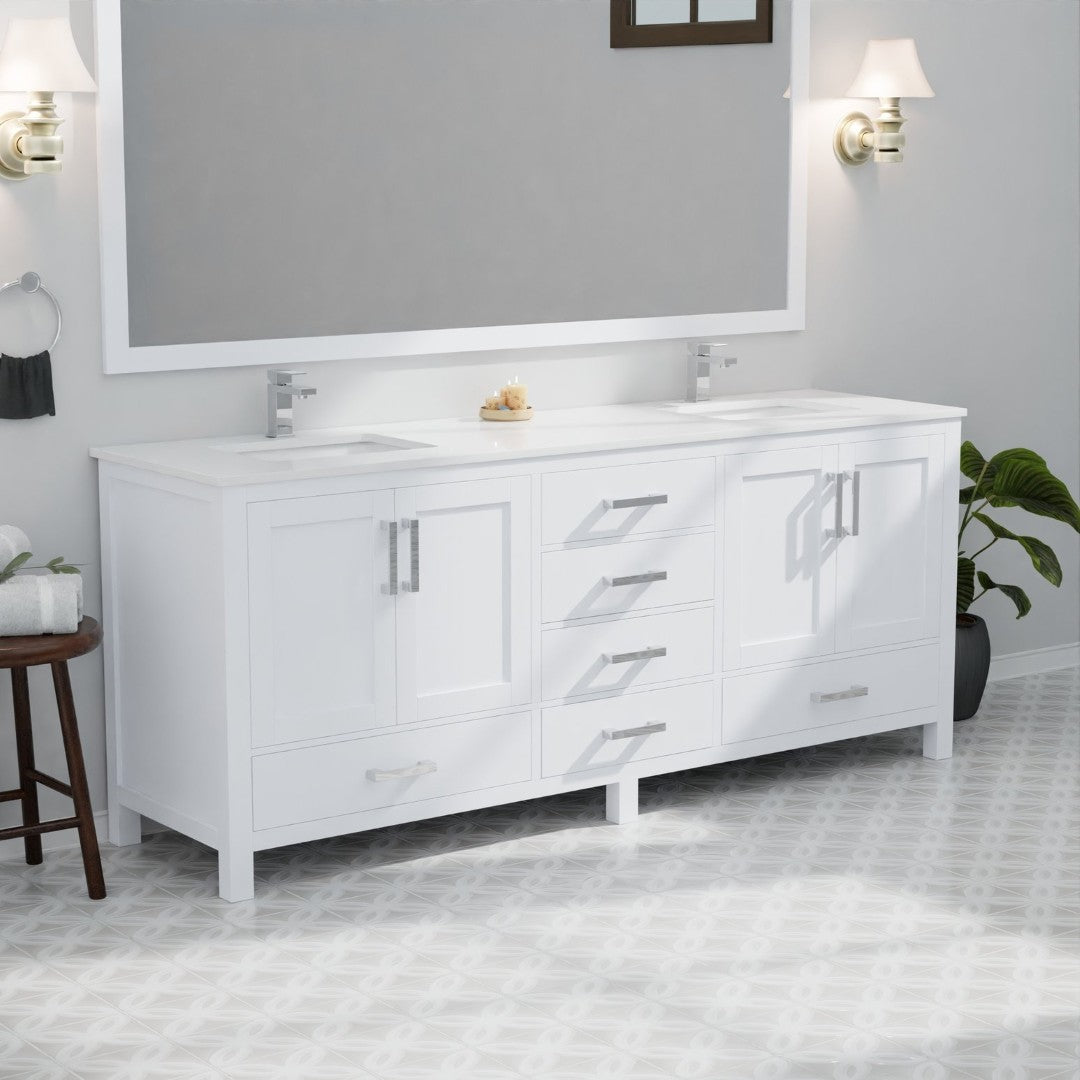 Upgrade your bathroom with this elegant white double vanity, combining classic style with modern functionality. The spacious countertop and thoughtful storage layout make it perfect for busy households seeking durability and a clean, organized look.