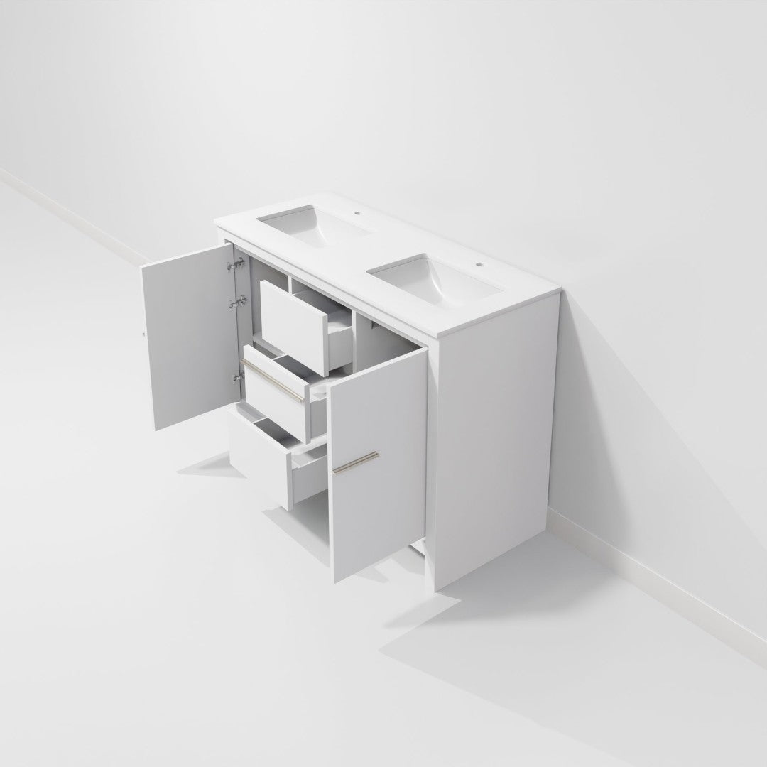 Elevate your bathroom with this elegant white double bath vanity, thoughtfully designed for both style and functionality. Its clean lines and durable finishes make it a versatile centerpiece for modern or traditional spaces, while the quartz top and soft-close hardware ensure long-lasting convenience and a refined look.