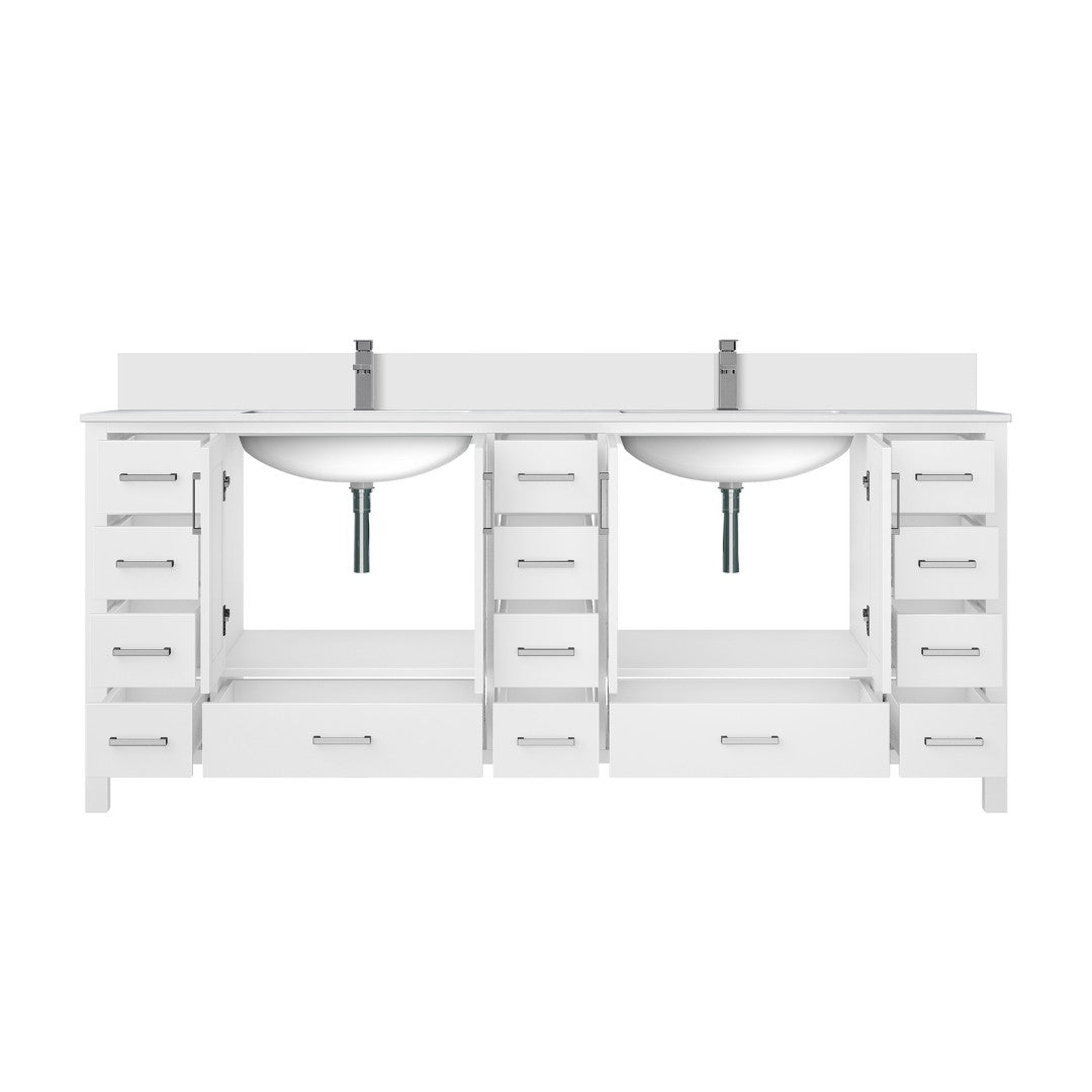Upgrade your bathroom with a spacious, elegant white double vanity that combines generous storage, durable surfaces, and a complete faucet set for a ready-to-install solution. Crafted from wood with a clean white finish and a white quartz countertop, this vanity delivers both functionality and refined style for busy family bathrooms or guest suites.