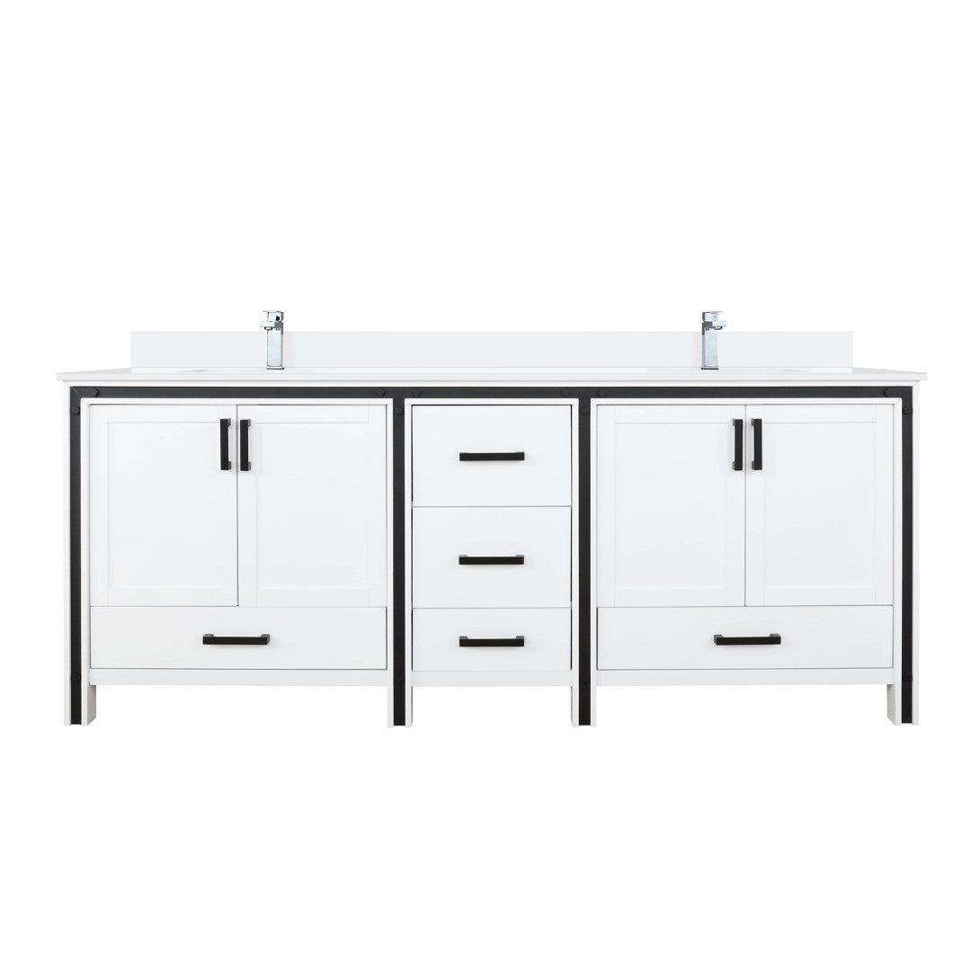 - Overall size: 80 in. W x 22 in. D vanity footprint with the included white quartz top and faucet set