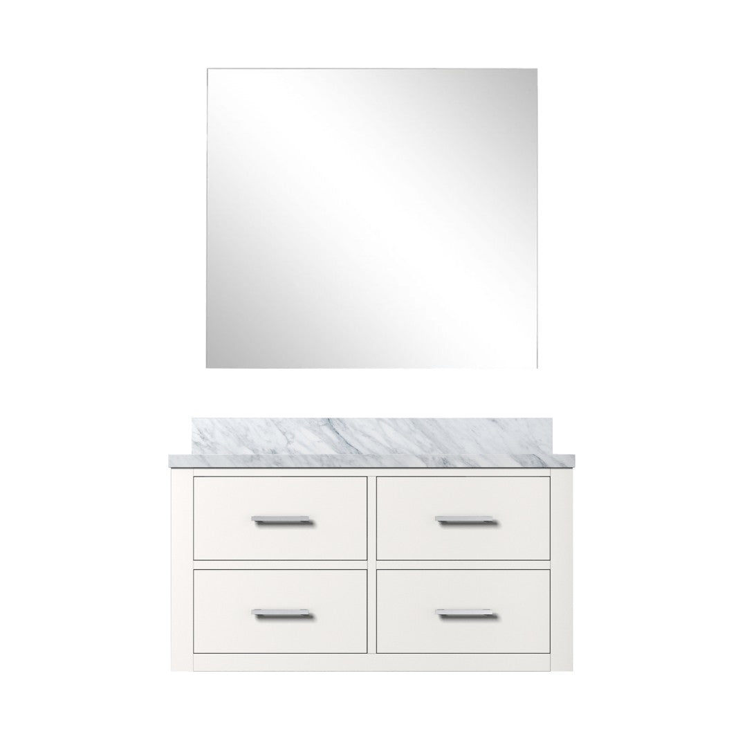 Upgrade your bathroom with this elegant white single vanity set, designed to blend classic style with modern functionality. The set includes a Carrara marble countertop, a soft-close vanity cabinet, and a frameless mirror, delivering a cohesive, high-end look that’s ready to install and built to last.