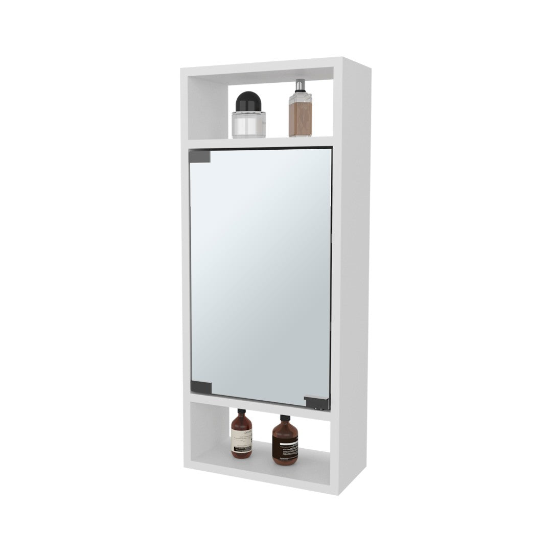 Refresh your bathroom or hallway with a space-saving, contemporary medicine cabinet that combines a mirrored door with open shelving for easy access and stylish display. The crisp white finish brightens any room while the mix of concealed and open storage keeps daily essentials organized and neatly out of sight — perfect for small spaces or minimalist interiors.