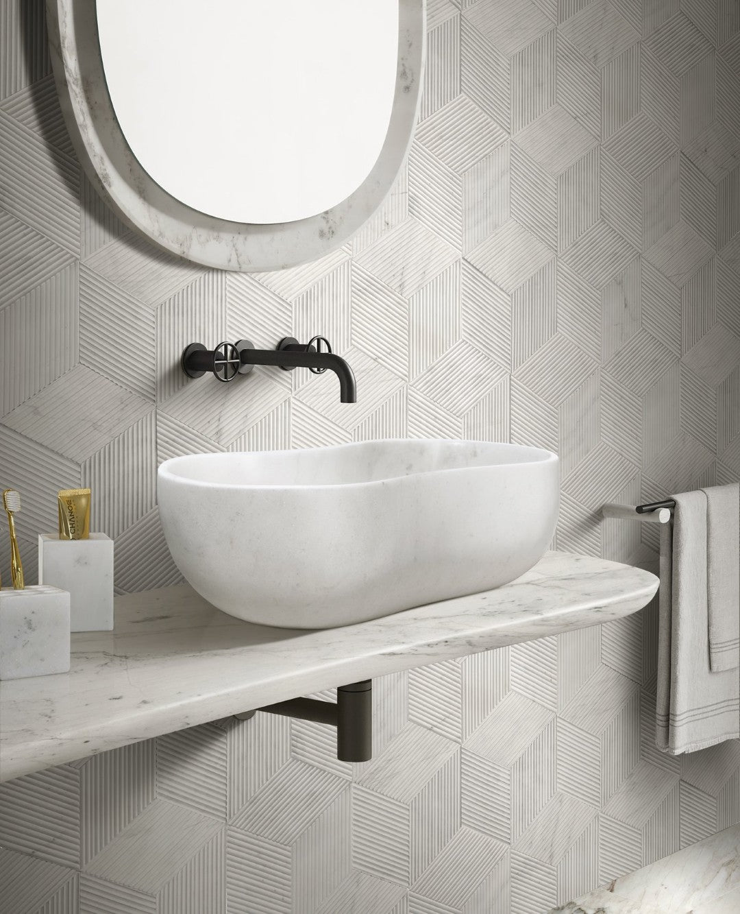 - Compatibility: Coordinates with matching marble wall and floor tiles to create a harmonious, integrated bathroom scheme.