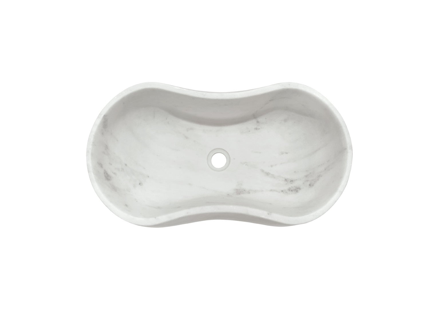 - 2. Crafted from snow mountain white natural marble, this wavy sink inherits the natural elegance, durability, and unique veining patterns that define the marble’s luxury.