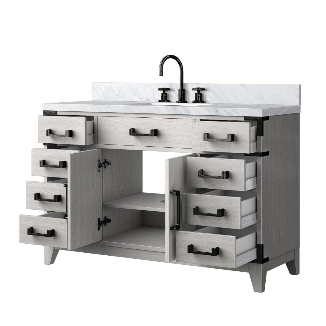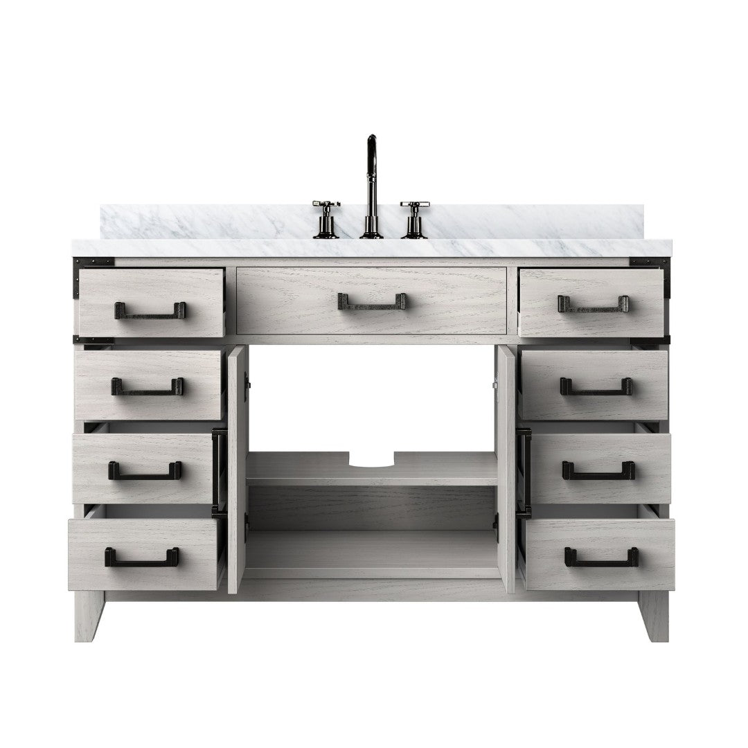 Elevate your bathroom with this finely crafted White Oak single-sink vanity, designed to combine timeless materials with modern functionality. The natural white oak finish and polished Carrara marble top create a sophisticated focal point, while thoughtful storage and hardware details make daily routines easier and more organized. Ideal for medium to large bathrooms, this vanity balances style, durability, and convenience.