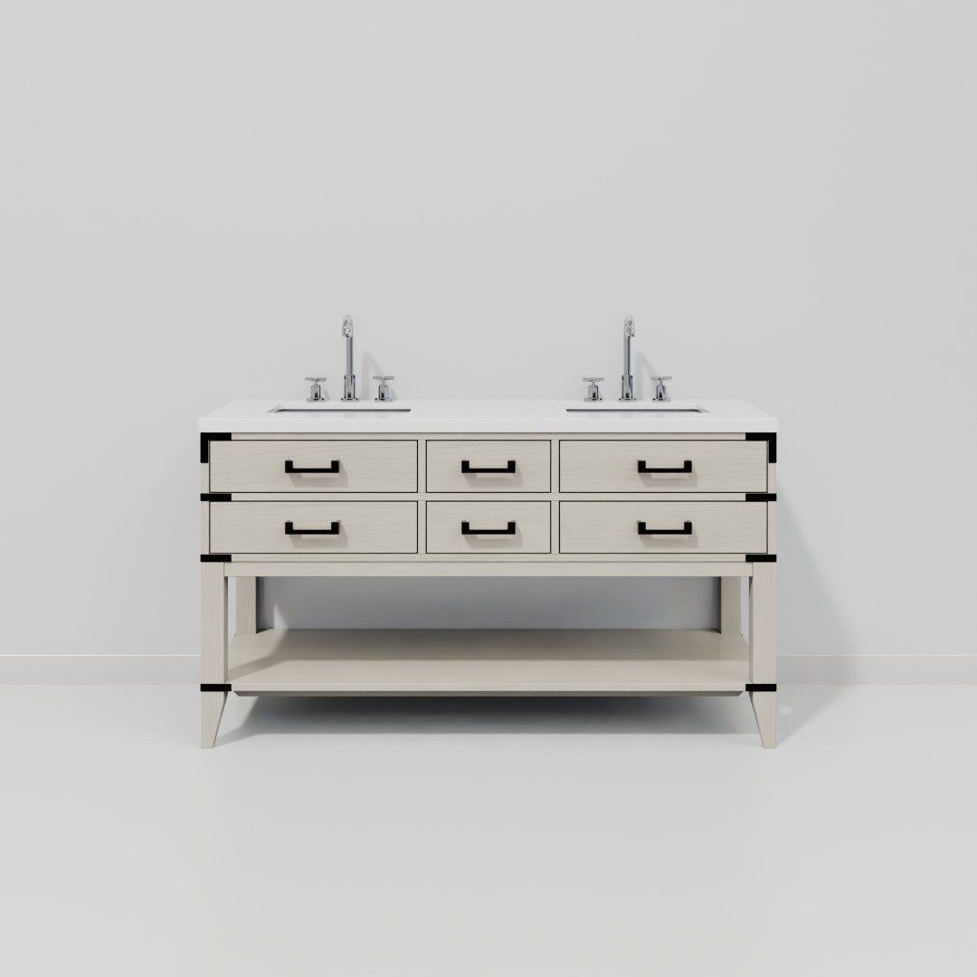 - Overall Size: Designed as a double vanity to fit two sinks comfortably; nominal counter footprint listed in title as 60 in. W x 22 in. D