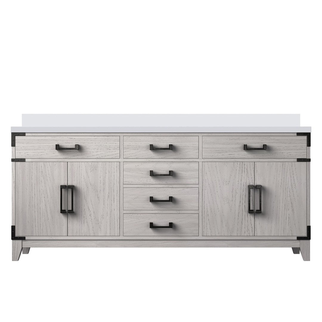 - Countertop: White quartz tops, hand-finished and double-sealed for durability, stain resistance, and easy cleaning.
