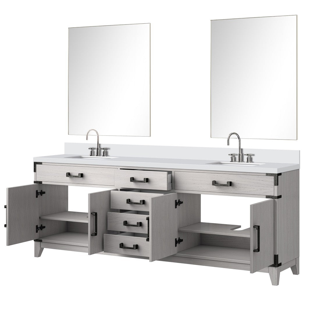 Transform your bathroom into a refined, functional space with this White Oak double vanity ensemble. Expertly crafted from warm white oak and topped with hand-finished white quartz, this complete set includes faucets and matching mirrors to deliver cohesive style, durable performance, and easy daily use for a busy household or a luxury guest bath.