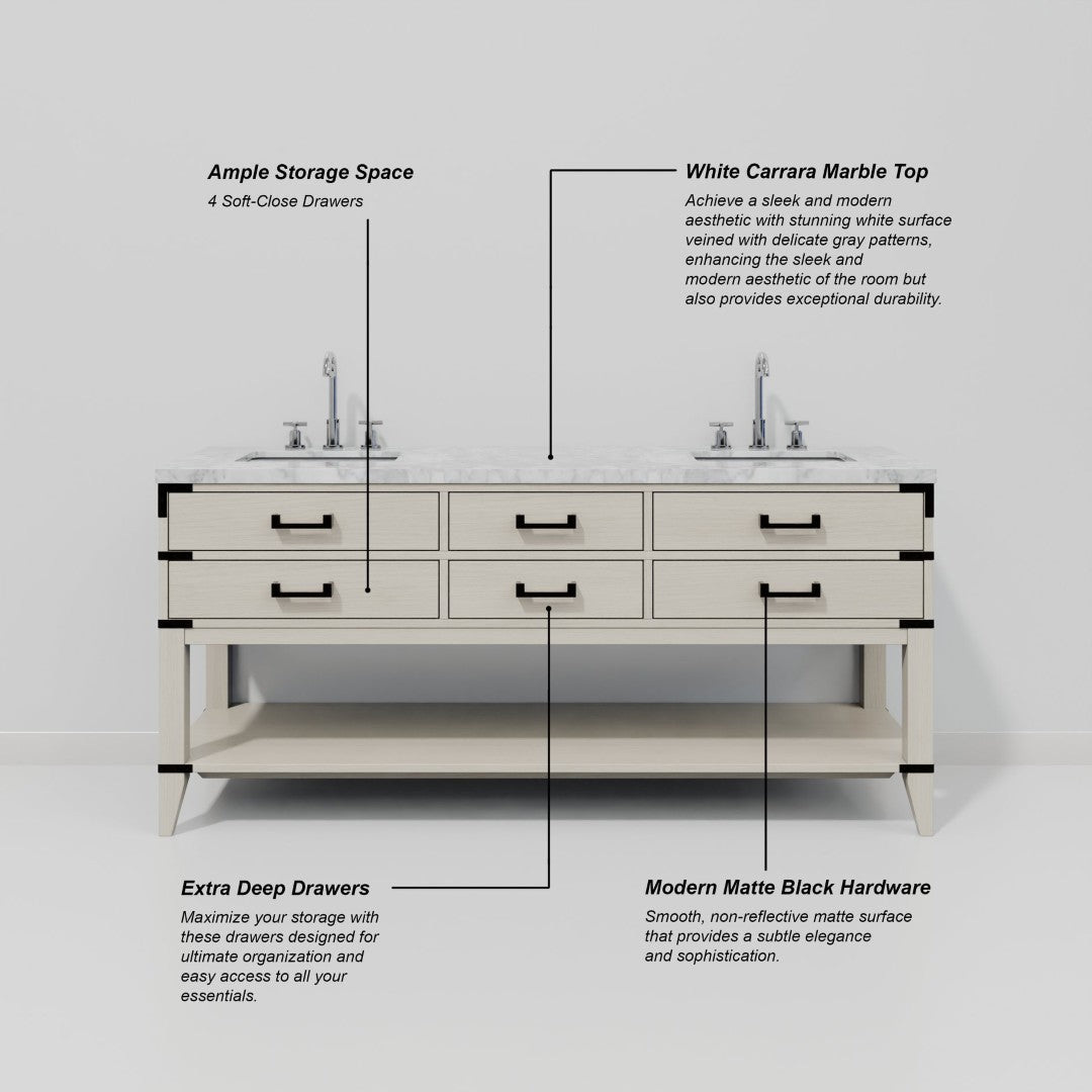 - Top Compatibility: Designed to accommodate a 72-inch countertop (72 in. W x 22 in. D) for double sinks or a continuous surface option.