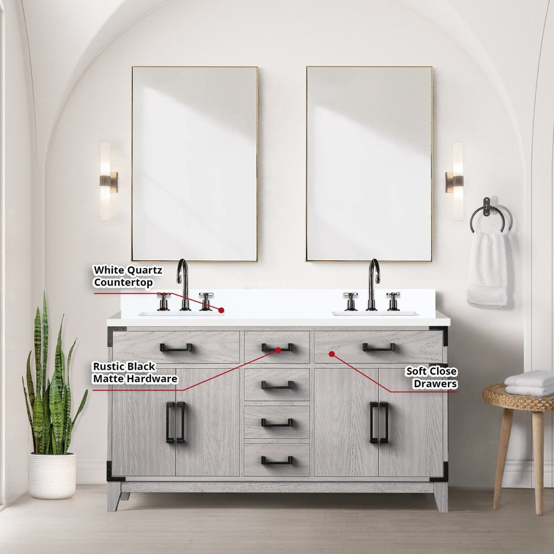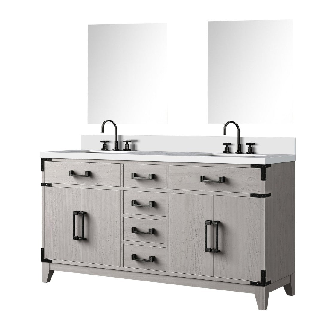 Elevate your bathroom with this elegant White Oak double vanity set—crafted for durability and refined style. Ideal for shared bathrooms or master suites, the ensemble pairs a spacious wood vanity with polished white quartz tops, twin mirrors, and a matching chrome faucet set for a cohesive, high-end look that’s ready to install.