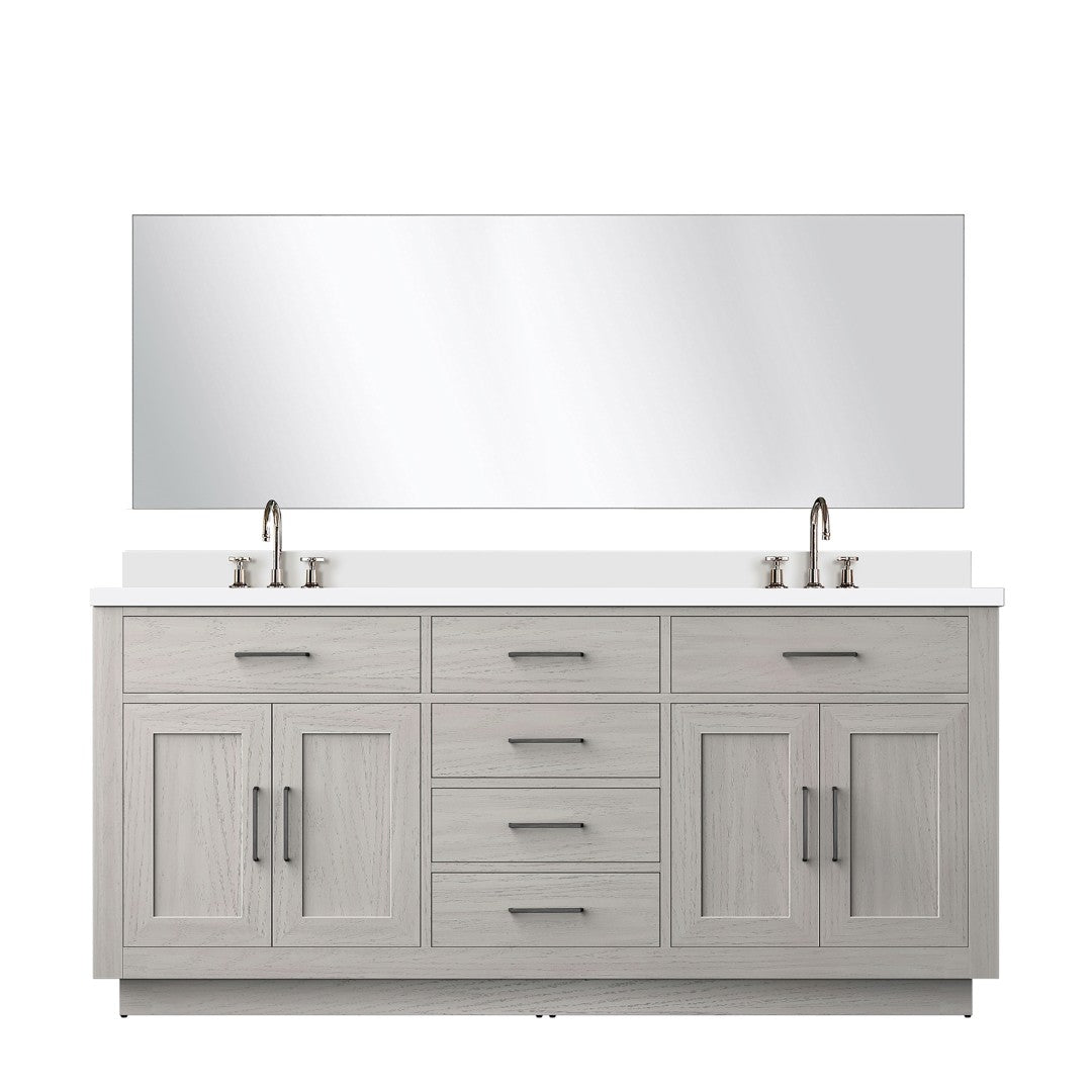 Transform your bathroom into a bright, functional retreat with this White Oak double vanity set. Designed for convenience and cohesive style, the package includes the assembled vanity with a durable cultured marble countertop, a large frameless mirror, and matching chrome gooseneck faucets—everything needed for a polished, ready-to-install centerpiece.