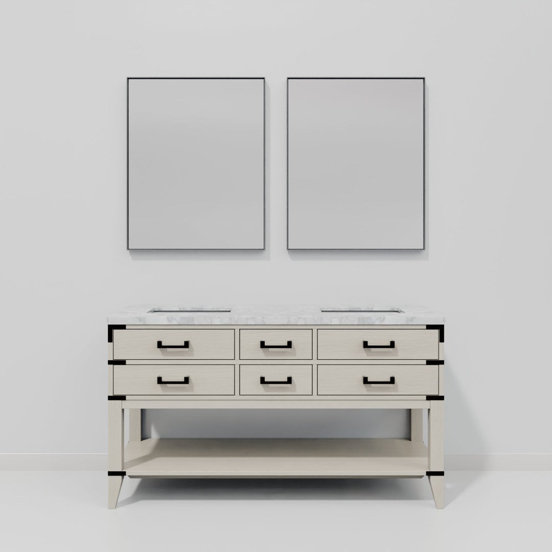 - Double-sink layout: Full 60" wide vanity footprint (title) provides ample counter space for two sinks and daily routines.