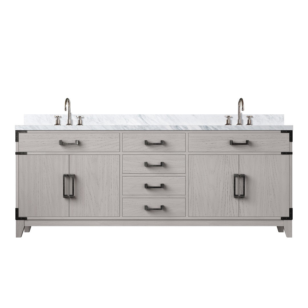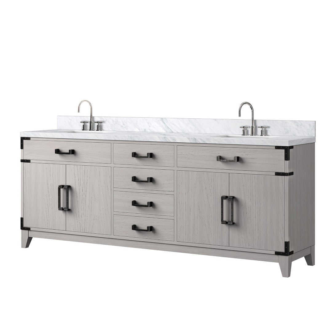 Elevate your bathroom with a refined, spacious double vanity that blends classic White Oak warmth with the timeless beauty of Carrara marble. Thoughtfully designed for functionality and durability, this vanity offers generous storage, soft-close hardware for quiet operation, and a polished marble surface finished for long-lasting protection — all complemented by a sleek chrome faucet set.