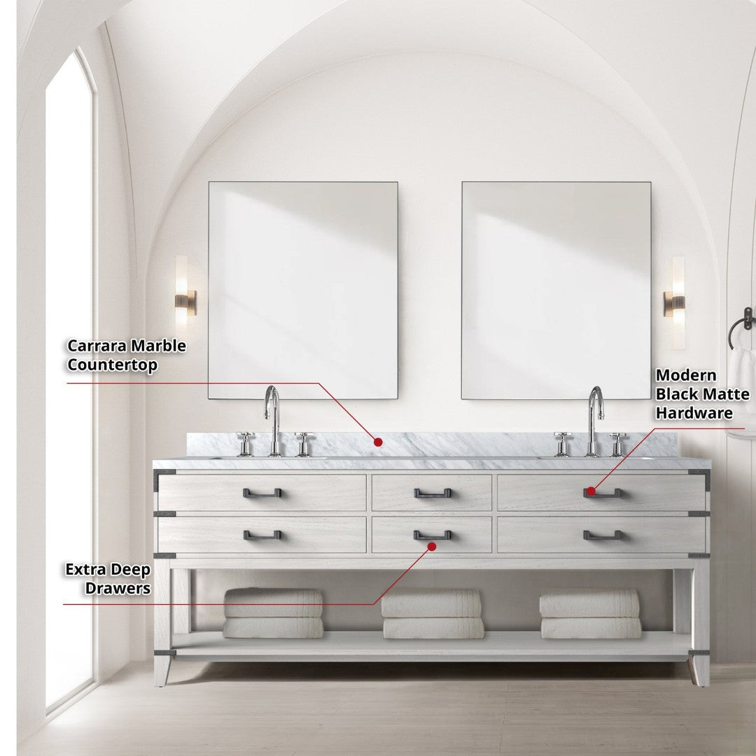 - Counters: Carrara marble tops—polished, hand-finished, and sealed twice for enhanced longevity and stain resistance.