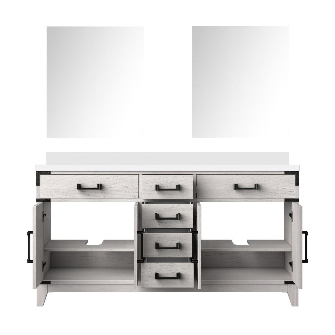 Elevate your bathroom with this elegant White Oak double vanity, designed for both style and functionality. Crafted from solid wood in a warm white oak finish and topped with durable white quartz, this vanity delivers ample storage, refined details, and a coordinated pair of mirrors — ideal for shared spaces or a luxurious master bath makeover.