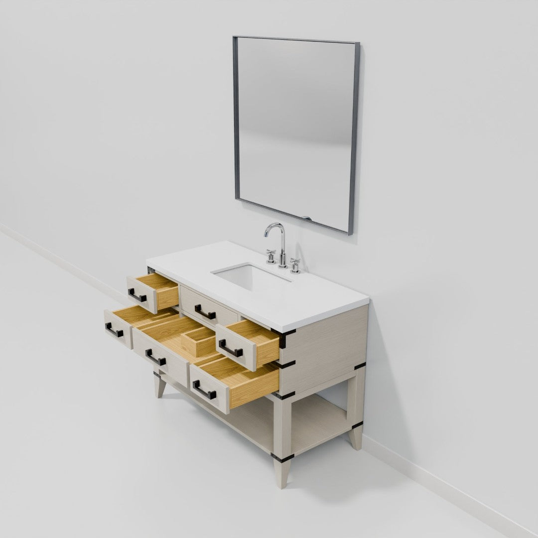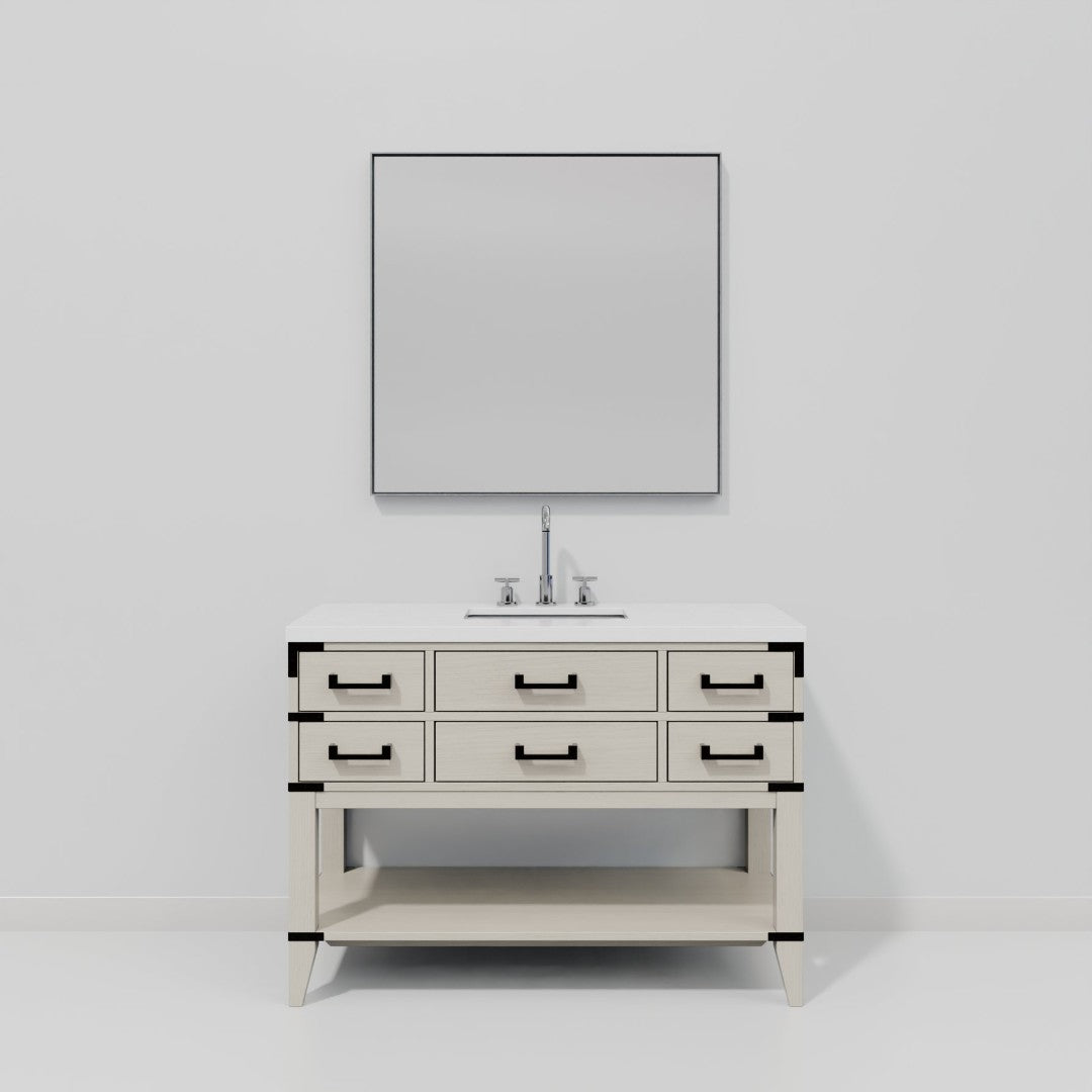 - Included mirror: Single 46 in. W x 36 in. H mirror included — coordinates with the vanity for a balanced, cohesive look.