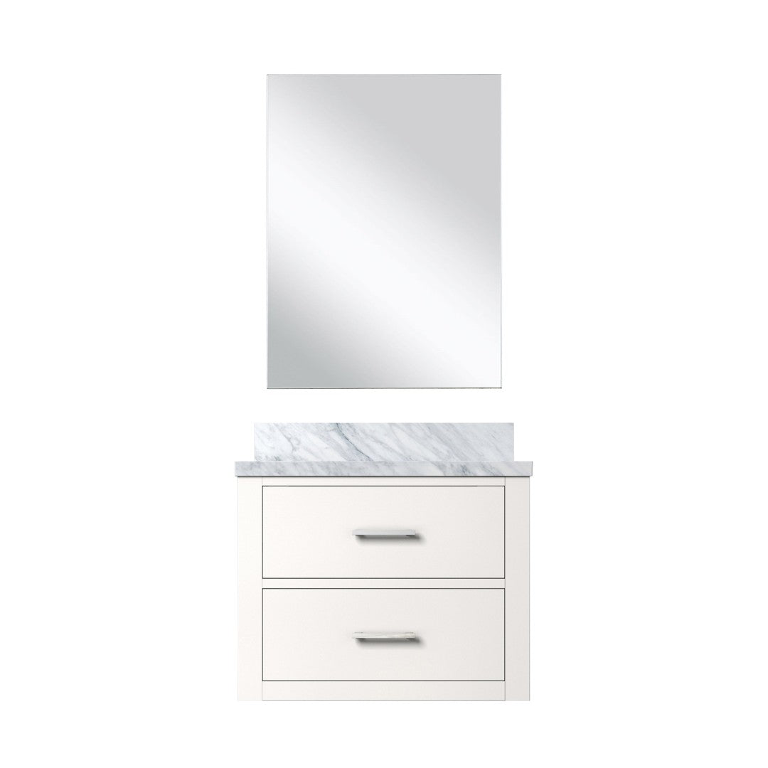 - Complete set: Includes vanity cabinet, acrylic countertop with integrated sink, and an 18 in. W x 24 in. H frameless mirror.