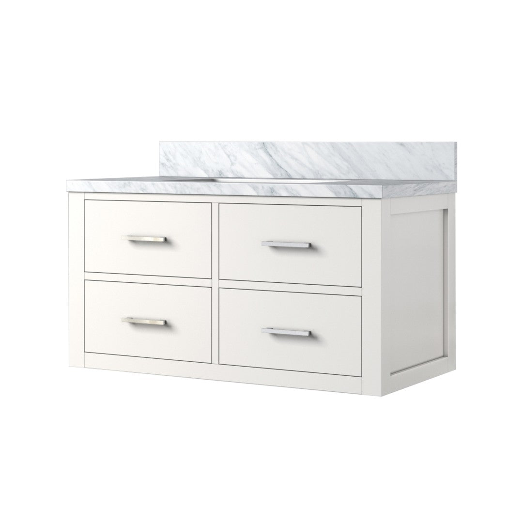 Elevate your bathroom with this elegant white single vanity, featuring a luxurious Carrara marble top and a solid wood frame for lasting durability. Designed for easy installation and everyday convenience, it combines classic style with modern functionality to enhance both traditional and contemporary bathroom settings.