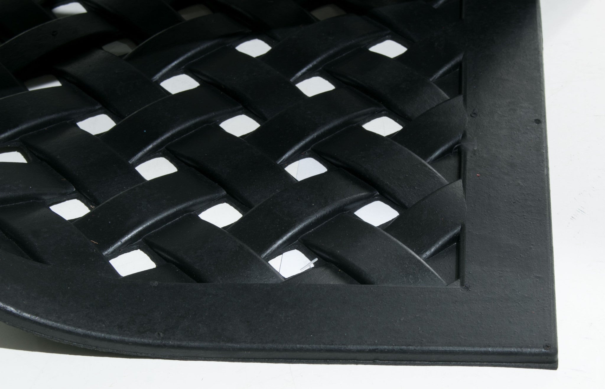 - Modern black rectangular door mat for easy cleaning with a garden hose.
