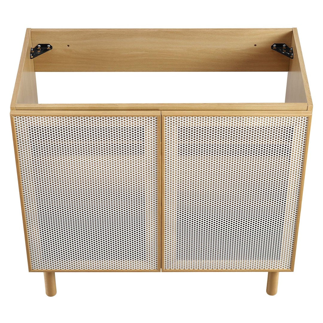 Bring modern minimalism and practical storage to your bathroom with the Calla 36" perforated metal vanity cabinet. Its clean lines, ventilated metal door fronts, and matte laminate finish create a contemporary focal point while hiding generous, customizable storage for toiletries, linens, and plumbing needs. Designed for easy installation and everyday use, this vanity pairs beautifully with a variety of sink basins and fixtures (not included).