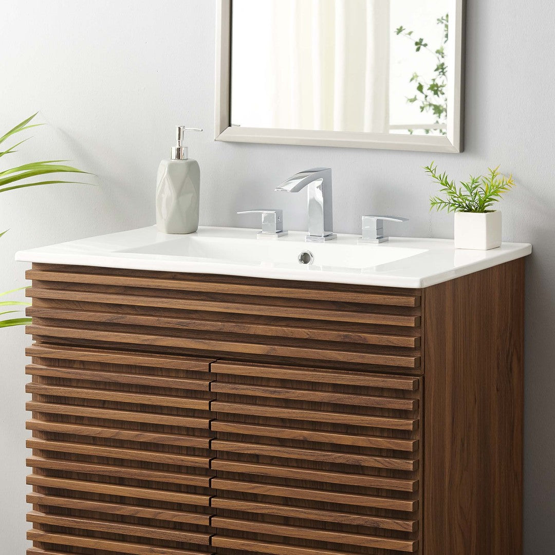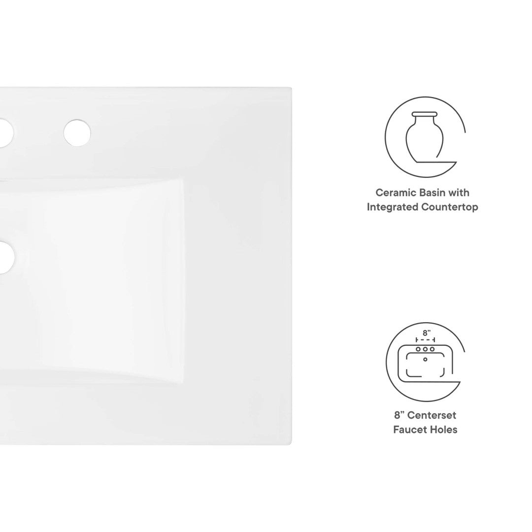 - Modern 30" Bathroom Sink Ceramic Construction 8-Inch Centerset Faucet Holes Integrated Countertop Rectangular Basin