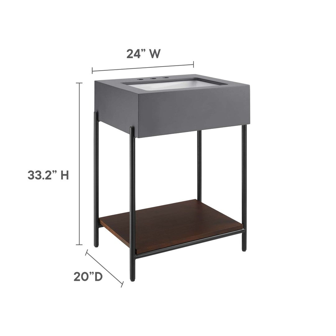 Bring contemporary, industrial style to your bathroom with a compact yet striking 24" single-sink vanity that pairs a raw concrete countertop with warm solid acacia and slender iron legs. Designed for small spaces without sacrificing functionality, this freestanding unit features an open display shelf for towels or décor, a ceramic basin pre-drilled for 8" widespread faucets, and adjustable levelers for stable placement on uneven floors. Its materials and proportions make it a focal point in modern and minimalist bathrooms alike.