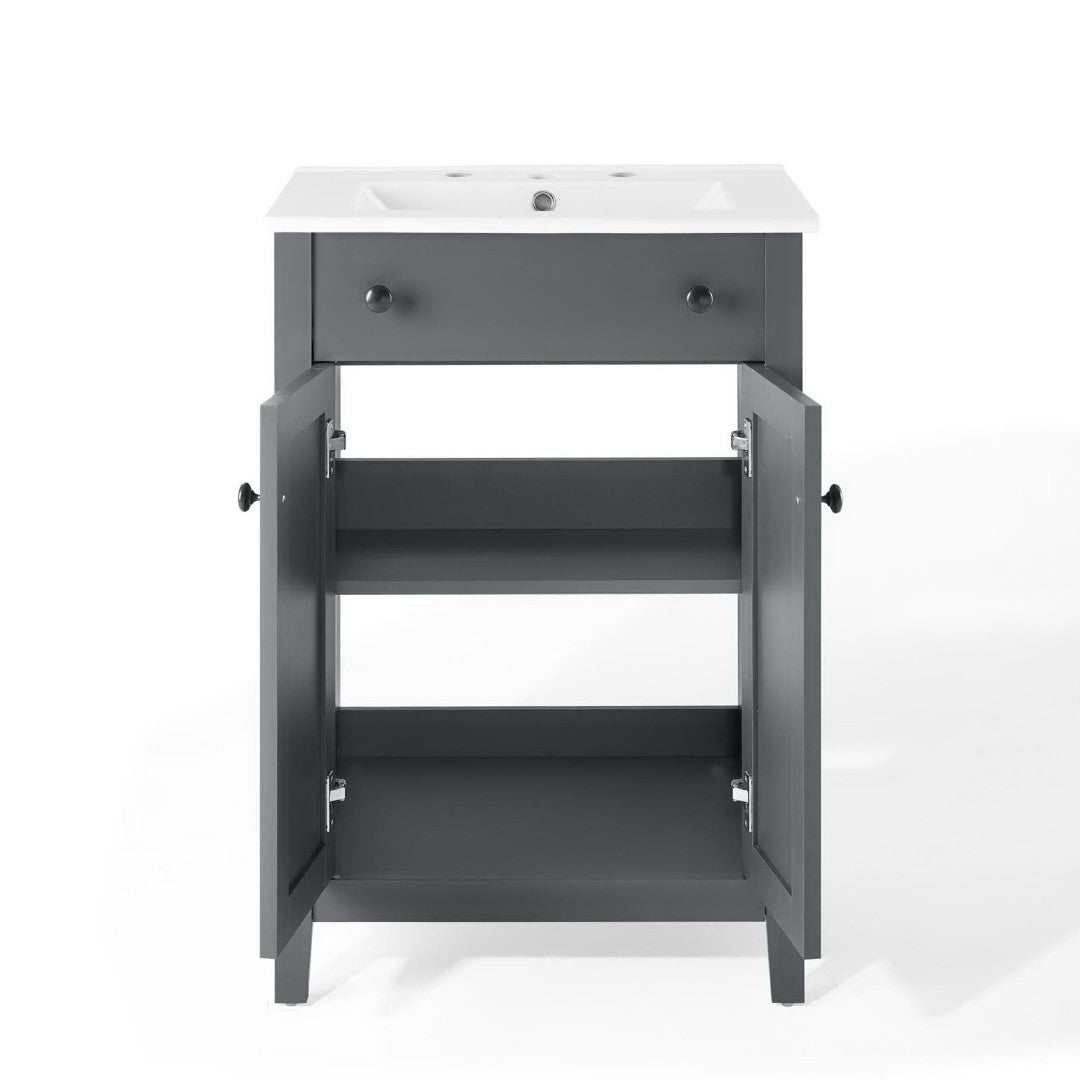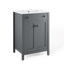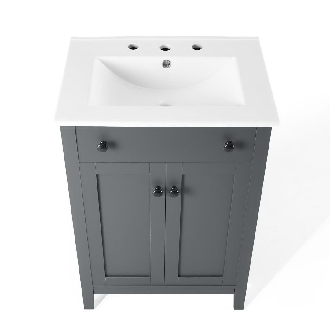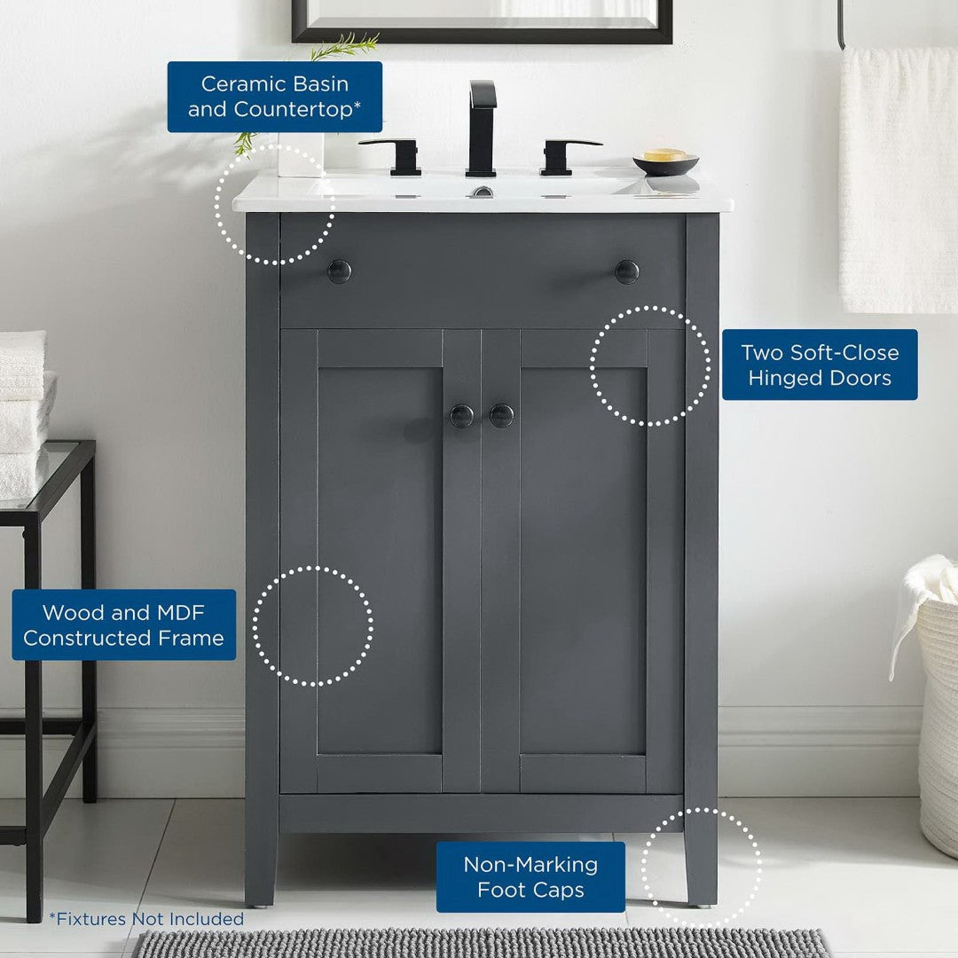 - Modern Bathroom Vanity Soft-Close Doors Non-Marking Foot Caps 8" Centerset Faucet Holes Integrated Ceramic Top Assembly Required