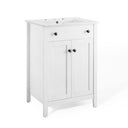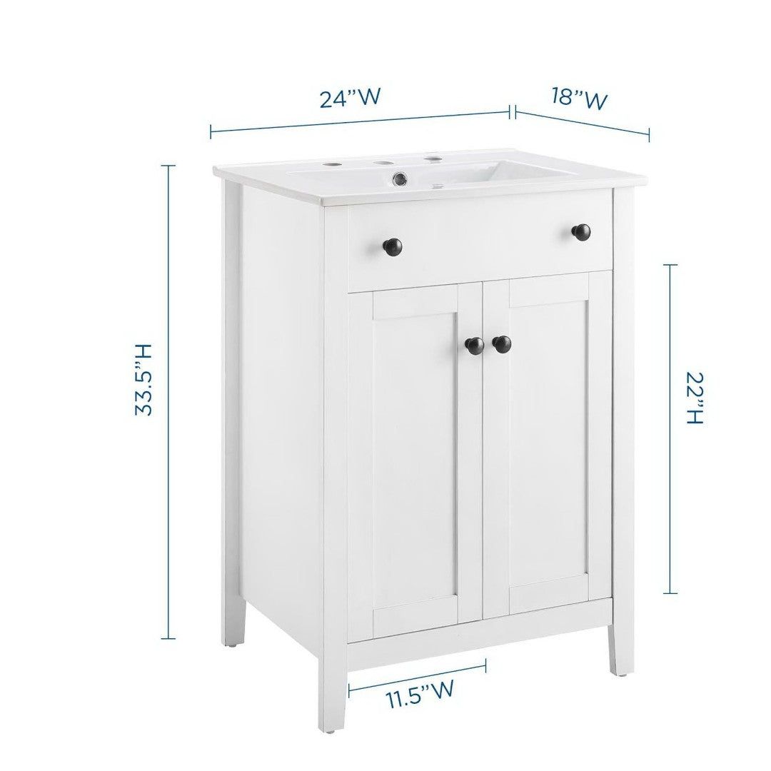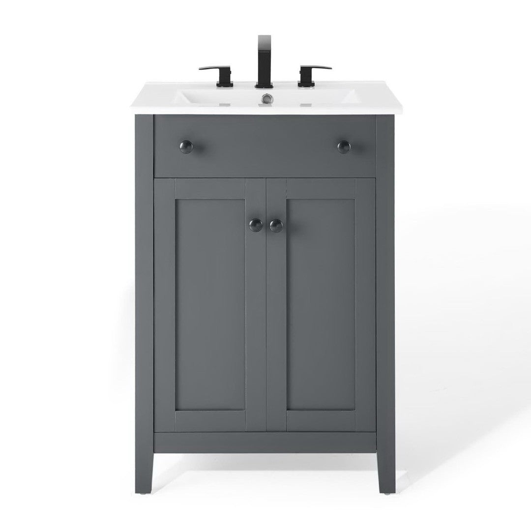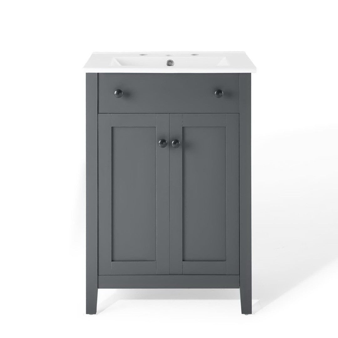 - Modern Bathroom Vanity Soft-Close Doors Non-Marking Foot Caps 8" Centerset Faucet Holes Integrated Ceramic Top Assembly Required