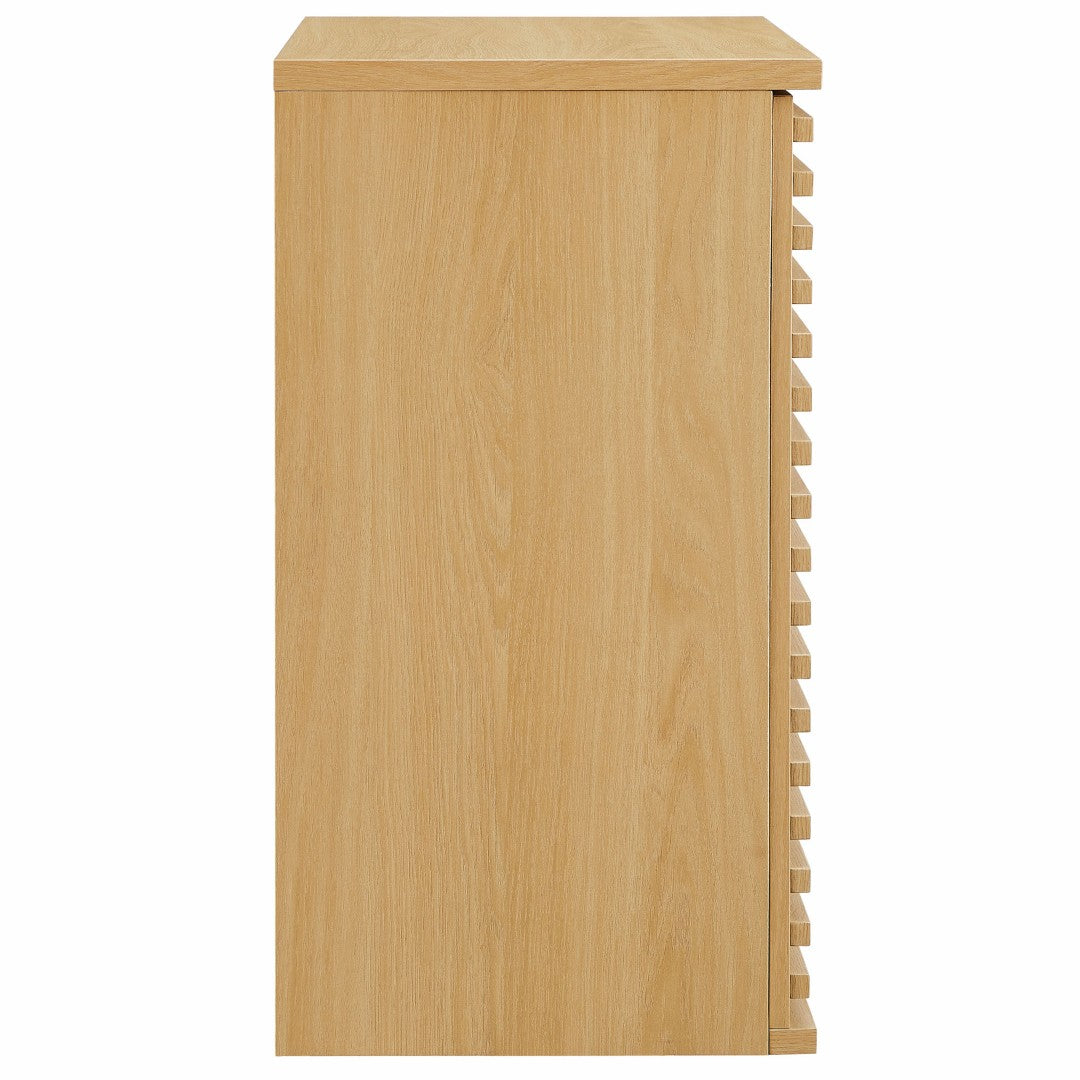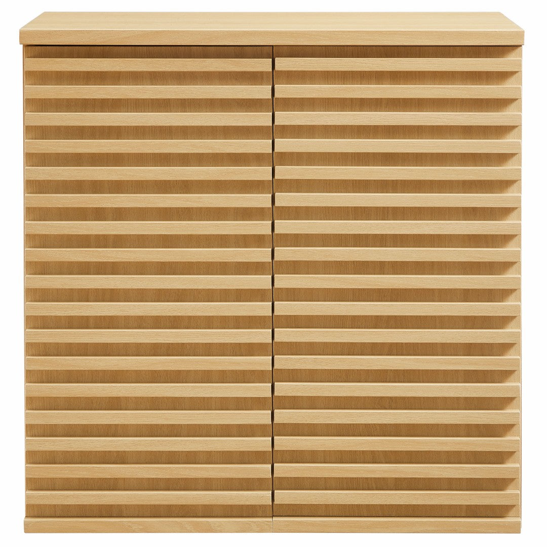 - Design & Finish: Grooved slatted doors and natural wood-look finish complement minimalist, Scandinavian, and mid-century interiors