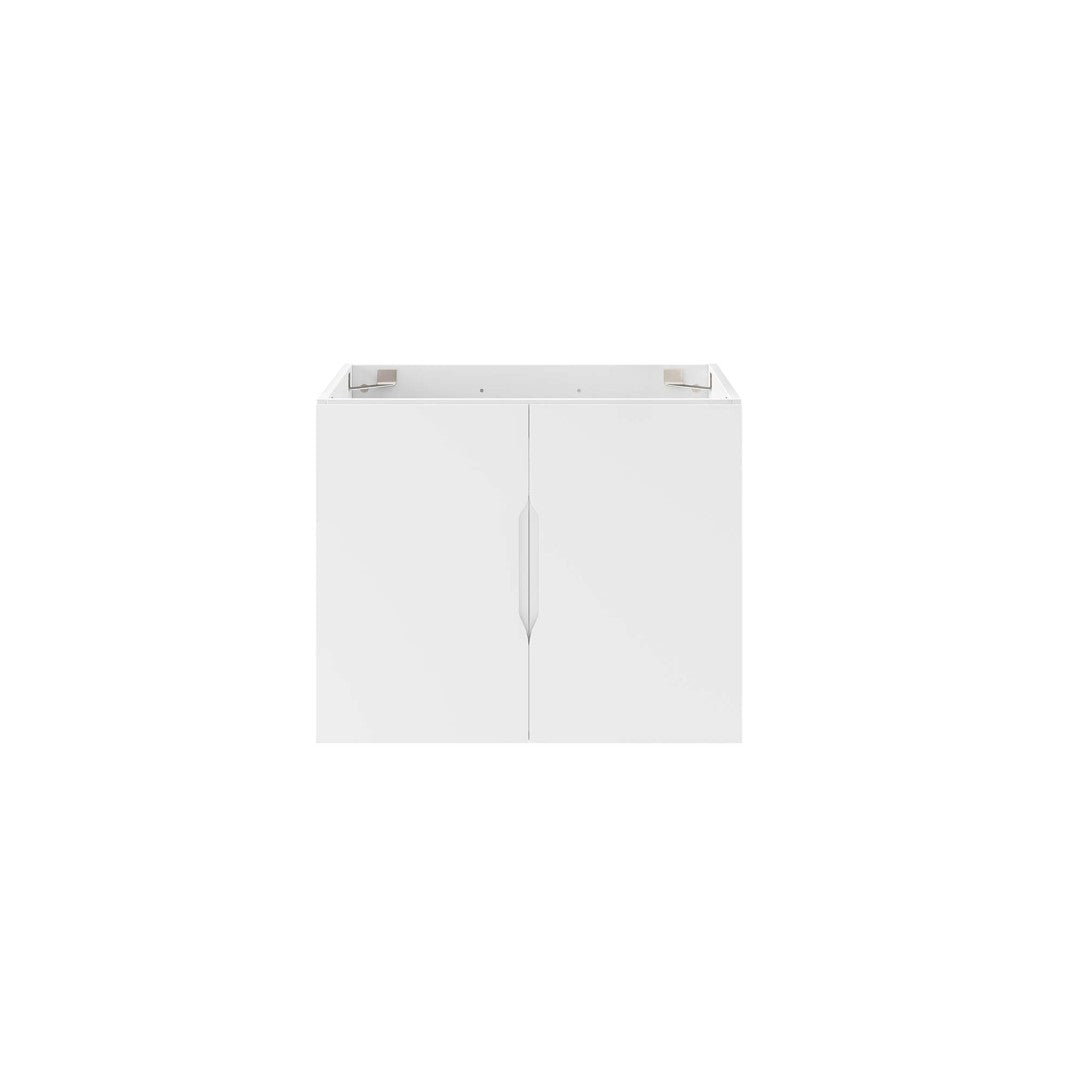 Give your bathroom a contemporary refresh with the Vitality 24" wall-mount vanity. Its clean-lined silhouette and melamine-finished construction deliver a modern look that’s both stylish and easy to maintain. Designed for practical everyday use, the floating design creates visual space while the two soft-close doors conceal ample storage for toiletries and linens. The open back accommodates plumbing for simple installation; sink basin and fixtures are not included.