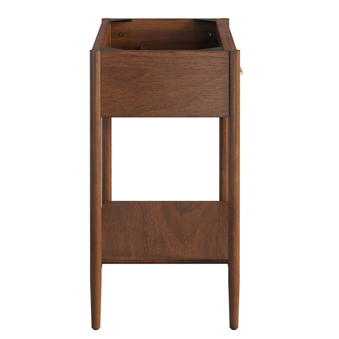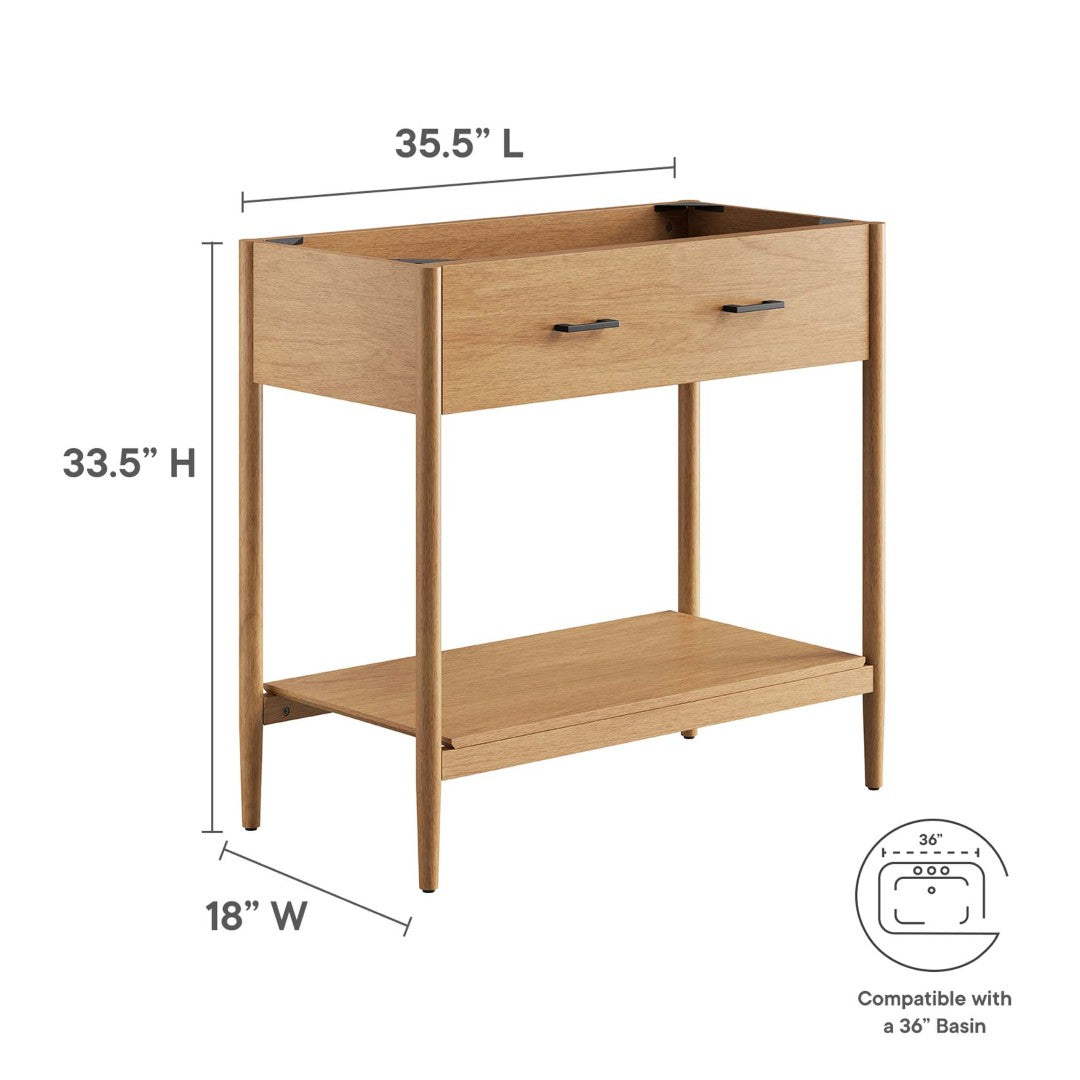 Bring clean, mid-century modern lines and warm wood tones to your bathroom with this 36" vanity cabinet. Thoughtfully designed for both style and function, it pairs a minimalist silhouette with practical storage—an ideal centerpiece for a contemporary powder room or full bath when matched with your preferred sink basin and fixtures.