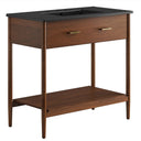 Elevate your bathroom with the Zaire 36" vanity — a refined blend of mid-century minimalism and modern functionality. Clean lines, warm wood grain, and subtle metal accents create an approachable centerpiece that balances storage and style. Designed for everyday use, it pairs a durable ceramic basin with an open display shelf and a roomy drawer to keep essentials organized while maintaining a light, airy feel.
