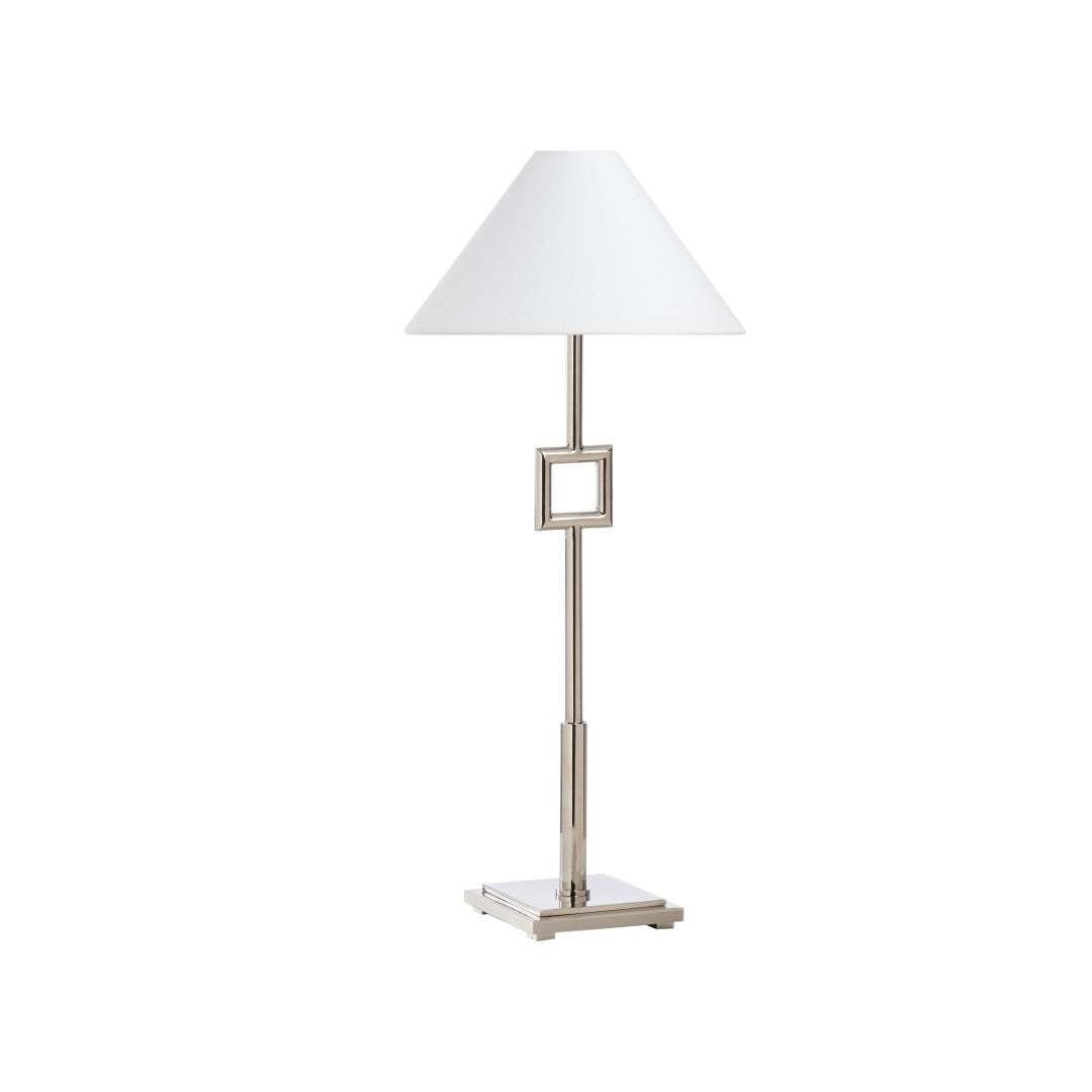 Add architectural elegance to your space with this refined metal table lamp, featuring a modern silhouette accented by a bold square detail and a lustrous polished nickel finish. Designed by Jamie Merida, the lamp blends contemporary lines with timeless sophistication to serve as both functional lighting and a stylish focal point for living rooms, bedside tables, or office desks.