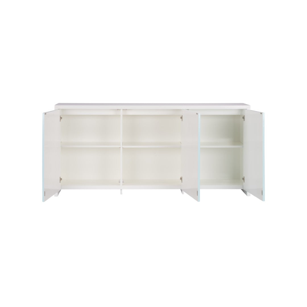 - Storage & access: Three seamless push-to-open doors provide easy, handle-free access to generous internal storage—ideal for linens, media components, or tabletop accessories.