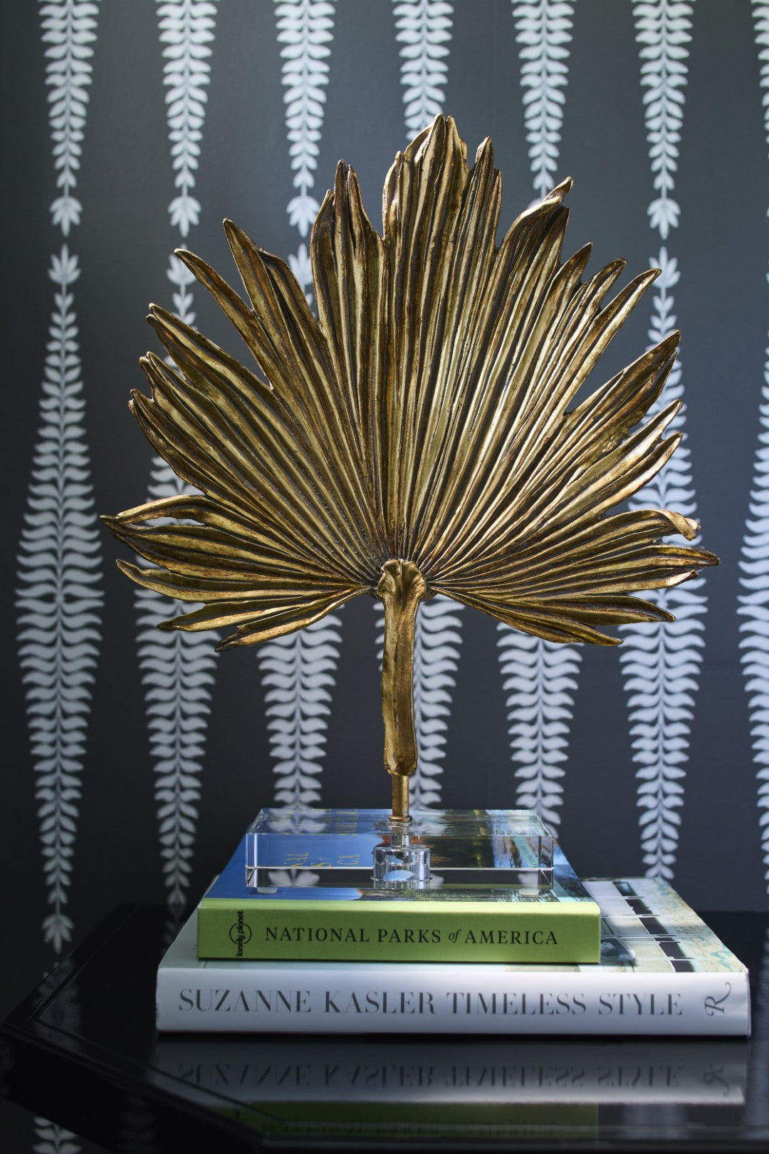 Add a touch of tropical glamour to any room with this elegant composite palm leaf sculpture finished in metallic gold and mounted on a clear crystal base. Its sleek, modern silhouette and reflective surfaces make it a striking accent for mantels, shelves, or entryway consoles, bringing warmth and visual interest without overwhelming your decor.