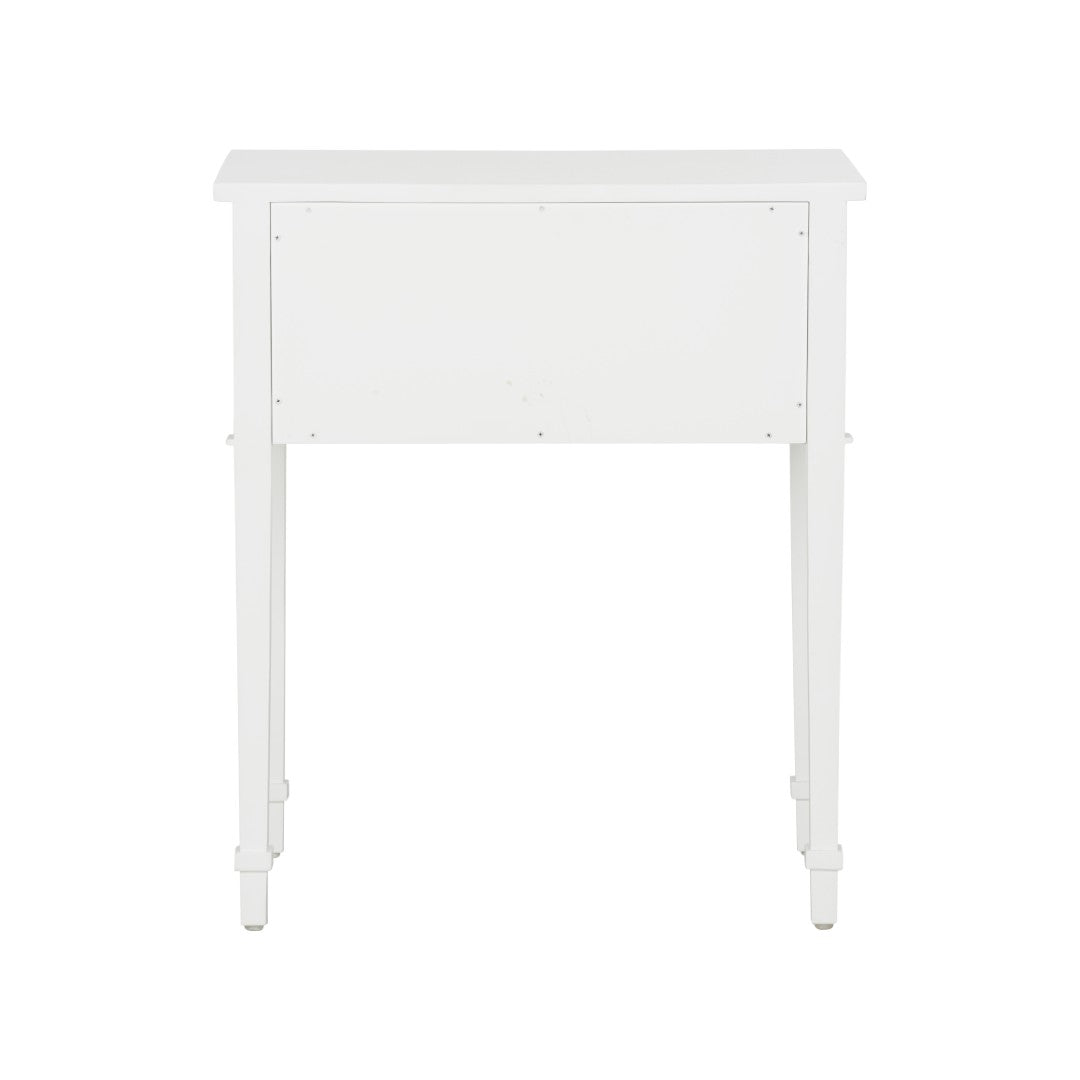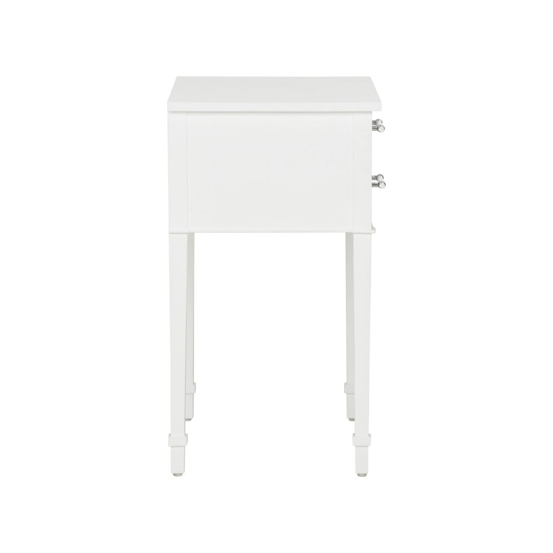A refined accent piece that brings understated elegance and gentle glamour to any room. The clean white finish and delicate mother-of-pearl inlay create a luminous, textured surface, while acrylic handles add modern sparkle. Designed by Bill Cain, this side table offers both style and functional storage for living rooms, bedrooms, or entryways.