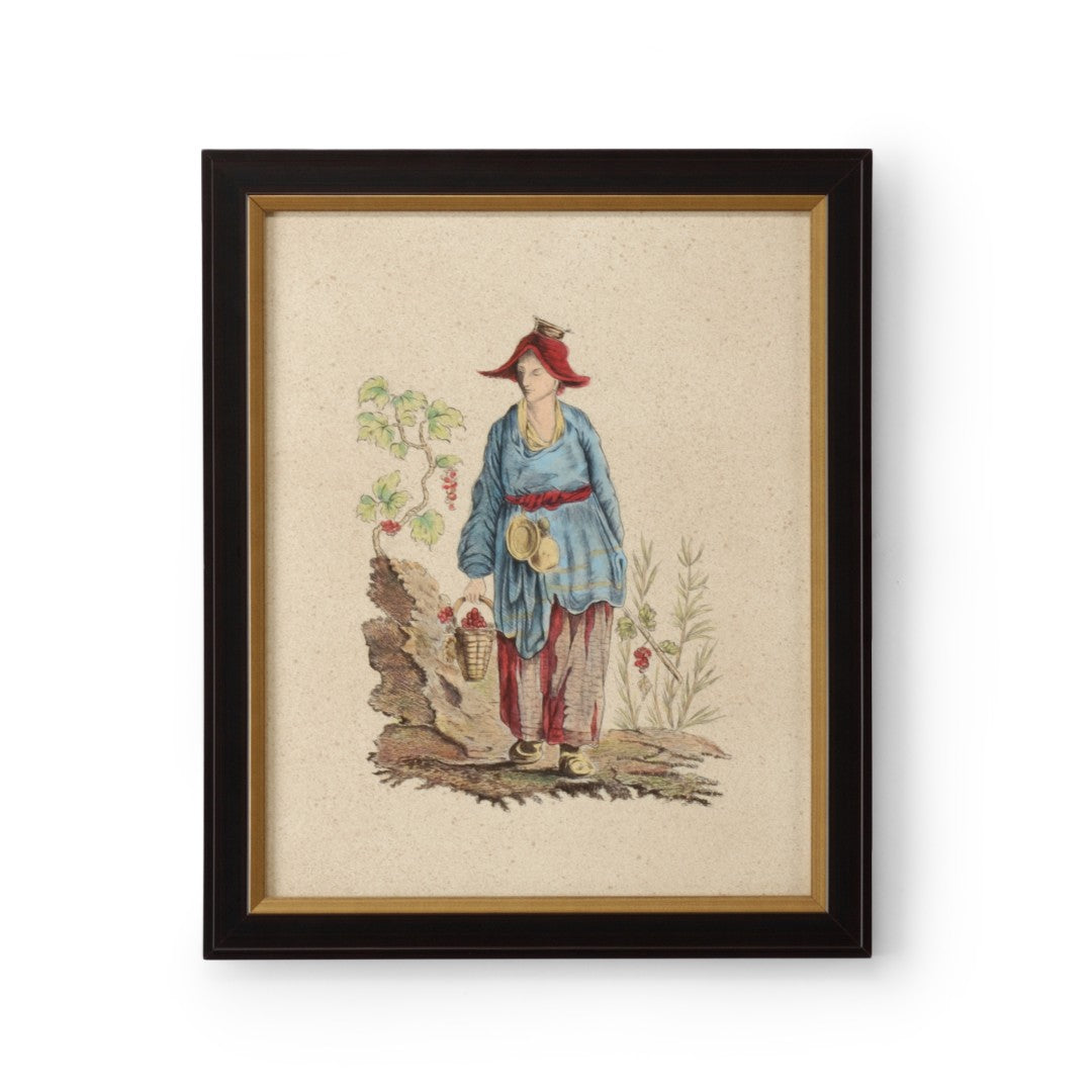 - Presentation: Hand-painted artwork set in a brown and antique gold frame with glass