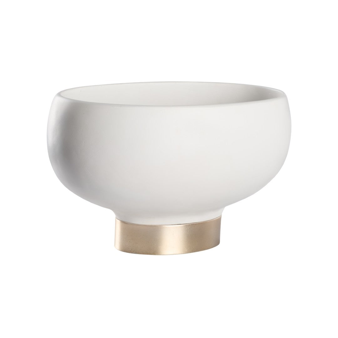 - Material: Resin bowl with matte white and silver leaf finish; champagne gold metal pedestal