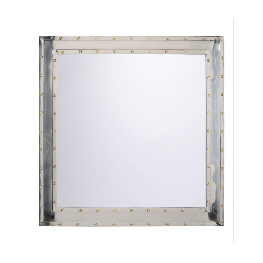 Bring bold, modern style into your space with a mirror that balances industrial edge and warm detailing. The Santos Mirror features a polished silver metal frame accented by antique brass rivets, creating a refined, contemporary focal point perfect for entryways, living rooms, bedrooms, or commercial settings.