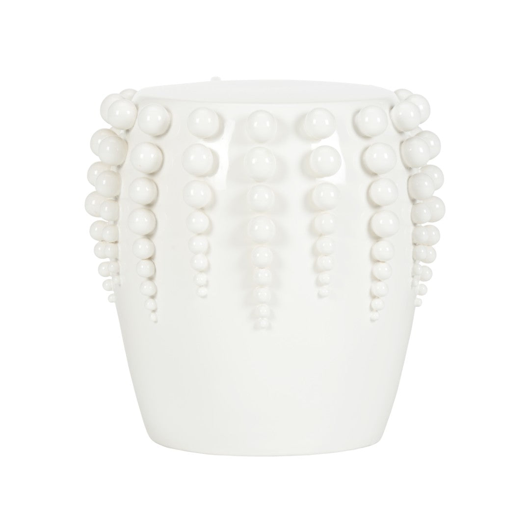 Bring coastal elegance to any room or patio with this sculptural Sea Urchin Garden Seat. Finished in a glossy white glaze with finely beaded details, it functions beautifully as extra seating, a side table, or a decorative accent. Handcrafted design cues by Jamie Merida give it an artisanal, textural presence that complements modern, coastal, and transitional interiors.