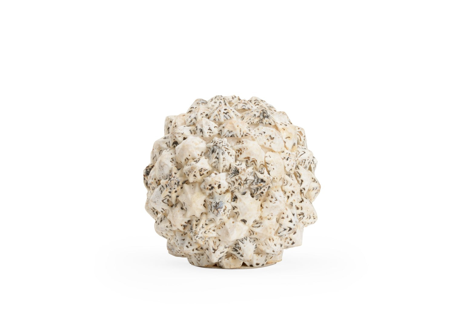 Bring a touch of coastal charm and natural texture to your home with this medium shell decorative ball. Handcrafted from natural saccharine shell, it provides an organic, luminous accent that complements modern, coastal, and rustic interiors. Use it alone on a pedestal, grouped in a bowl, or as a tabletop vignette to add subtle sophistication and natural warmth.