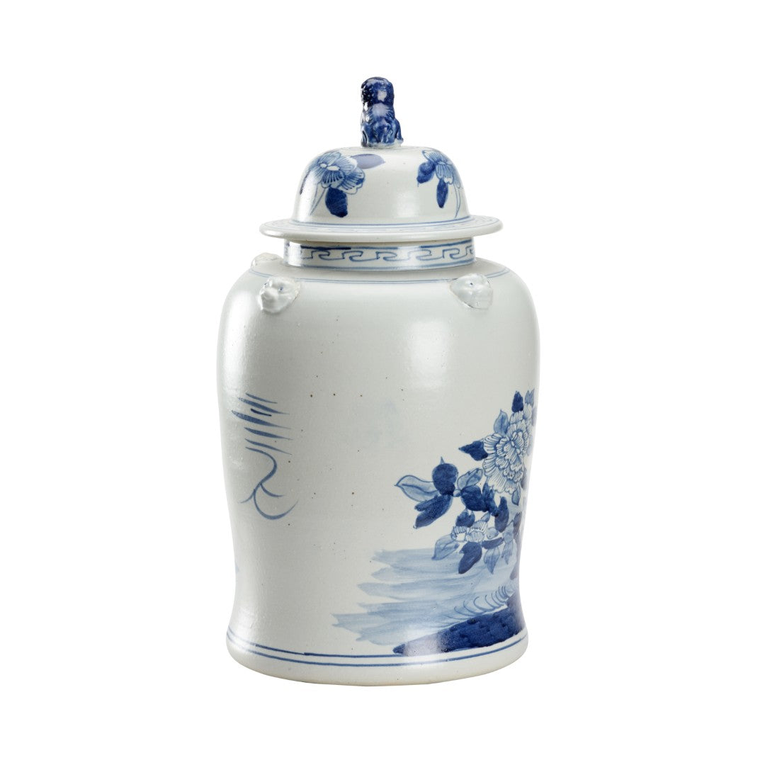 Add timeless elegance to any room with the Song Garden Ginger Jar — a large chinoiserie-style piece finished in a classic blue-and-white glaze. Its graceful silhouette and detailed garden motifs make it a striking standalone accent or a complementary addition to a curated collection of vases and decorative accessories.